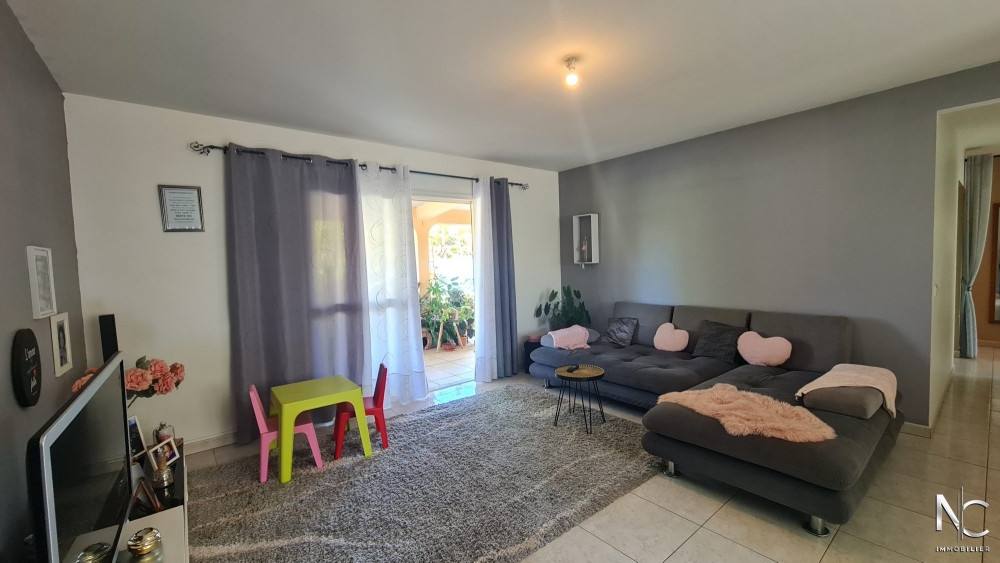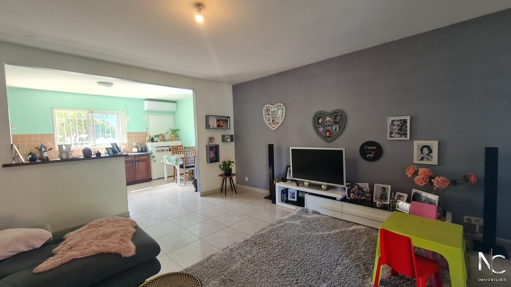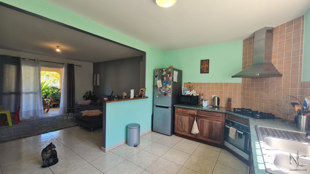 Située en impasse, avec un accès rapide à la SAV, villa F4 en dur de 2007, comprenant un séjour, une cuisine ouverte de 14 m², 3 chambres dont 2 avec placard, une salle d'eau, un wc indépendant et une buanderie.