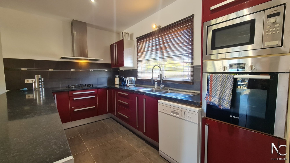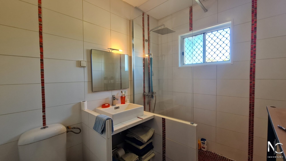 Ses 116 m² habitables offrent : une entrée, un séjour/salon climatisé de 40 m², une cuisine US équipée, 3 chambres dont une suite parentale avec dressing et salle d'eau + wc privatifs, une 2ème salle d'eau avec wc, une buanderie. La terrasse couverte de 50 m² donne côté forêt et permet de profiter de la vue sur le terrain de 41 ares entièrement clos.