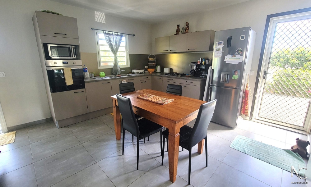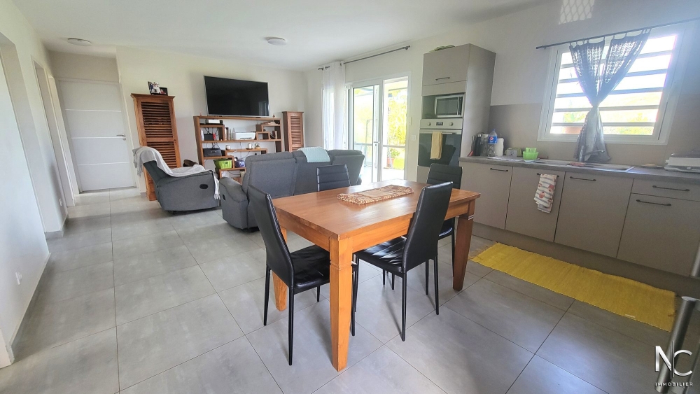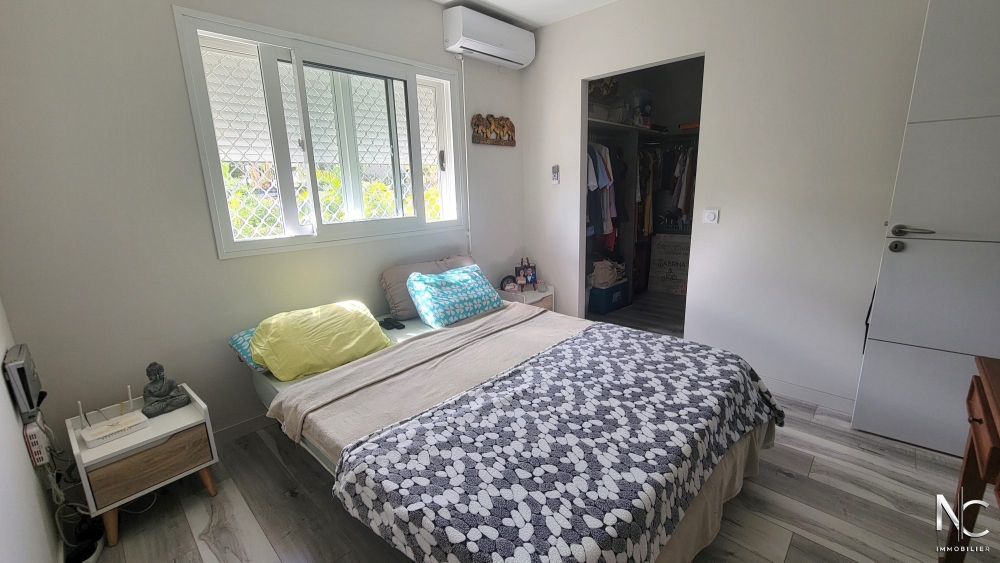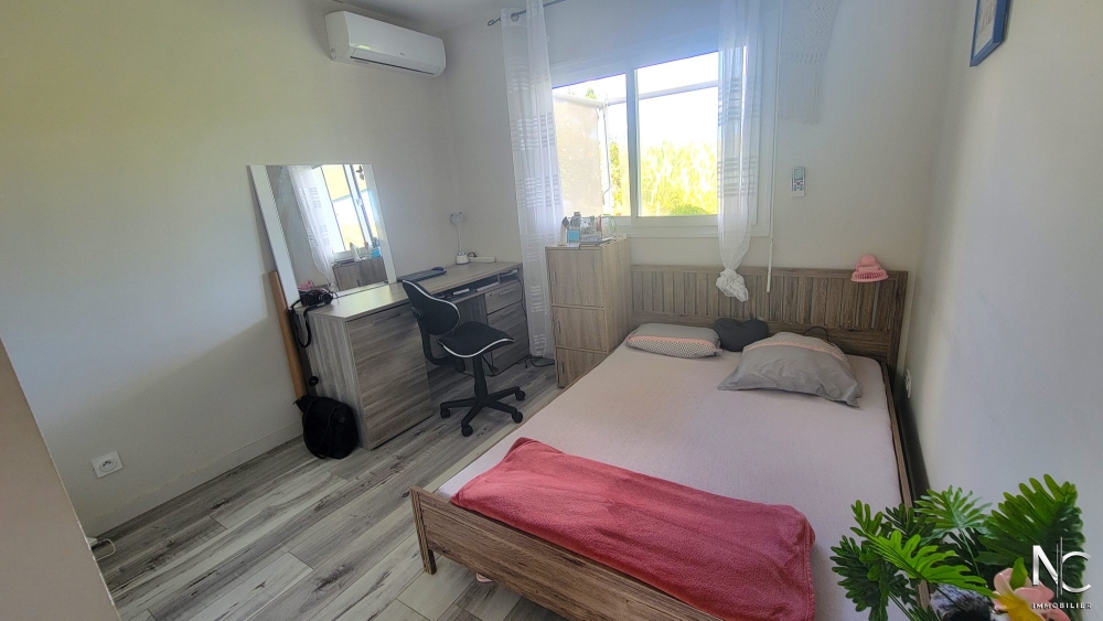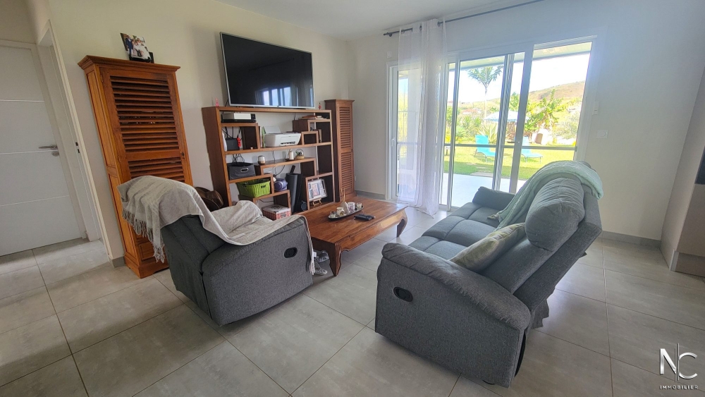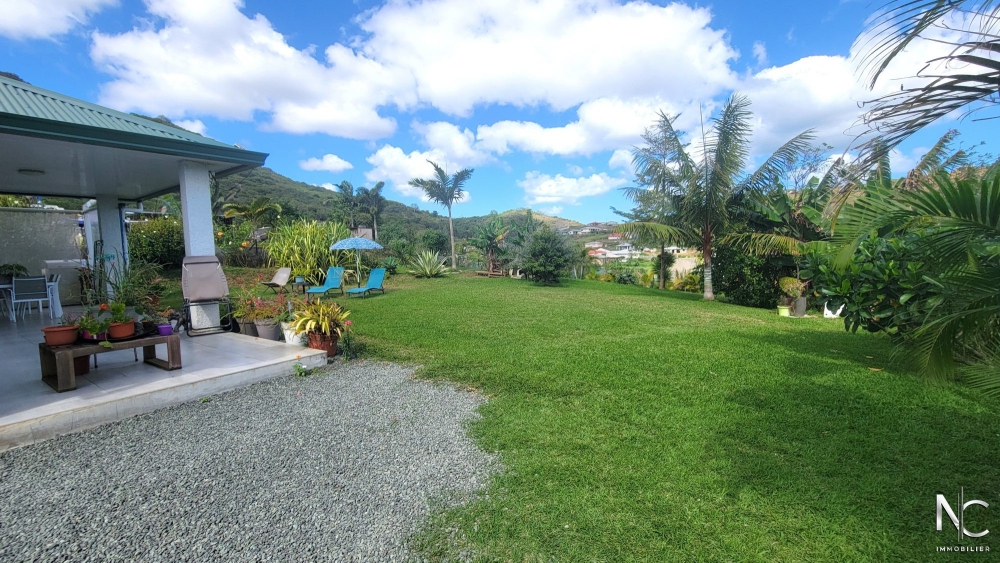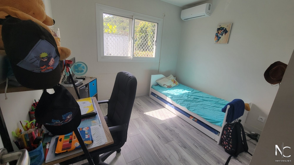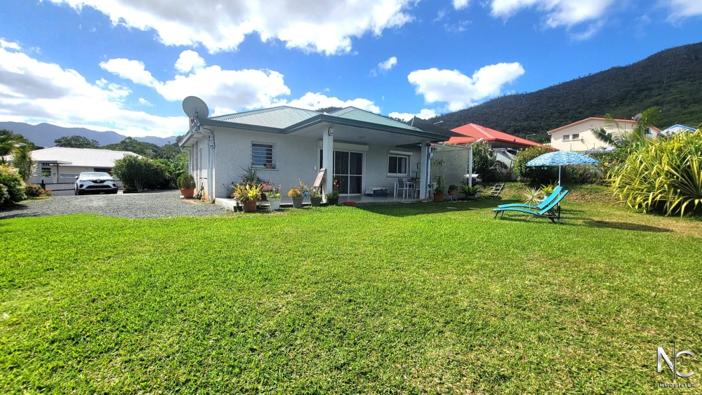 Lotissement Les Niaoulis, sur parcelle d'env. 10ares 70 ca, en position dominante ave vue dégagée, villa F4 récente en construction traditionnelle, composée d'une cuisine équipée ouverte sur salon, une salle d'eau, un wc indépendant, une buanderie, une chambre parentale climatisée avec dressing, deux chambres climatisées avec placard, une terrasse d'env. 30m2 semi-couverte donnant accès à un jardin entièrement clôturé, paysagé, fleuri et arboré.