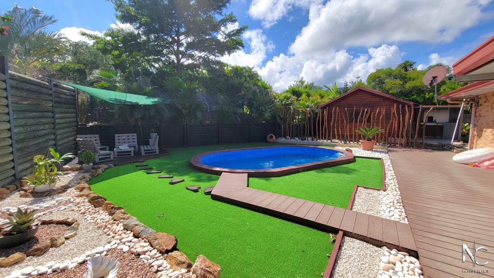 Dans lotissement résidentiel, sur une parcelle de 12.25 ares, villa australienne F4 comprenant une pièce de vie de plus de 60m2 avec cuisine équipée ouverte sur salle à manger et salon, 1 chambre parentale avec dressing et salle de bain, 2 chambres avec placards, salle d'eau, buanderie. Terrasse couverte donnant sur espace piscine.