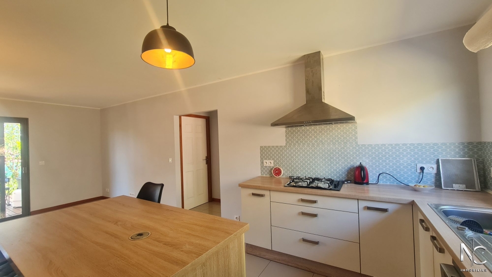 EXCLUSIVITE NC IMMOBILIER - En fond d'impasse, villa F4 rénovée de 85 m² offrant une belle pièce de vie avec sa cuisine équipée, 3 chambres avec rangements, une salle d'eau, un wc et une buanderie. Depuis la terrasse de 25 m² en partie couverte, vous pourrez profitez d'une jolie vue sur le Mont-Mou.