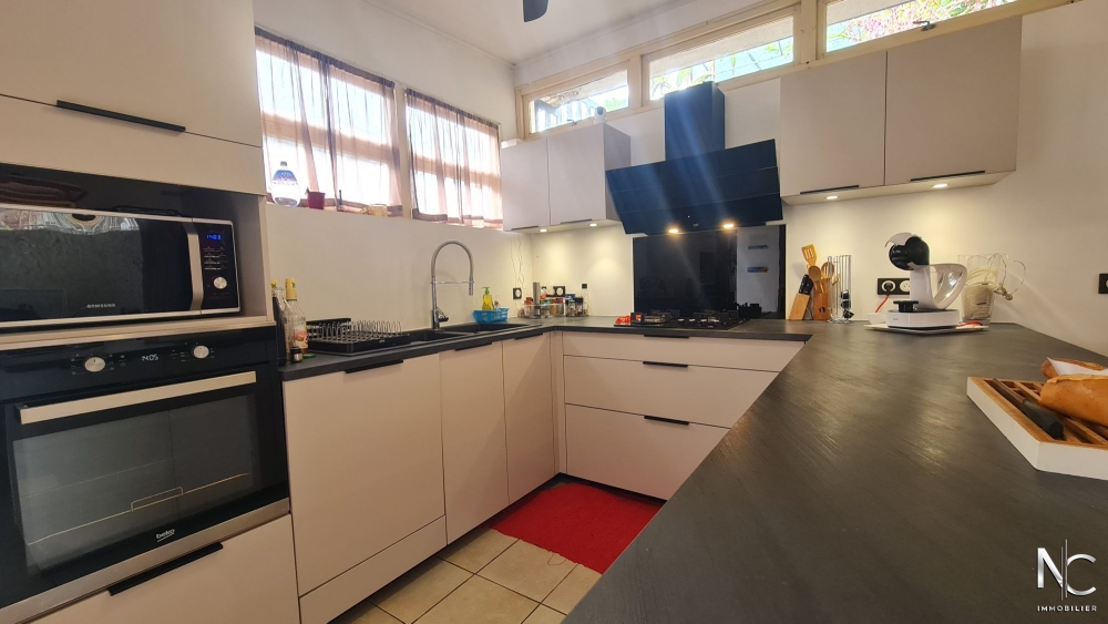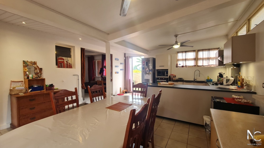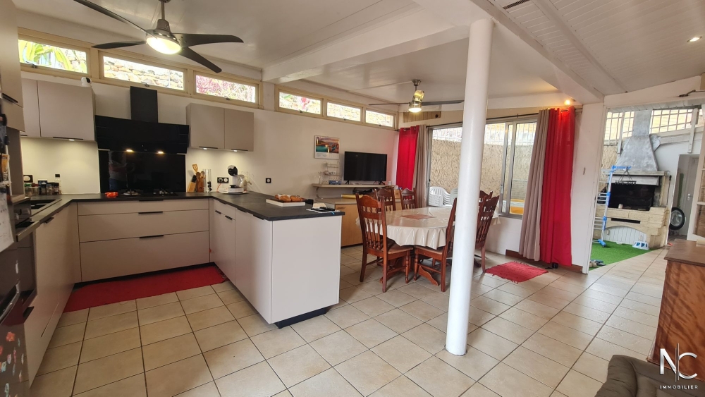 Située dans la zone résidentielle de Logicoop, villa traditionnelle F5 offrant plus de 170 m². Elle se compose d'un séjour, d'un salon climatisé, d'une vaste cuisine équipée entièrement rénovée avec coin repas prolongée par un patio de 18 m² avec BBQ, de 3 chambres avec placards et climatisées pour deux d'entre elles, d'une salle d'eau rénovée avec douche à l'italienne + wc et d'un second wc individuel.