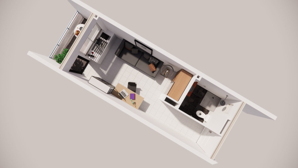 Un studio neuf de type T1 (lot4) d'une superficie habitable de 23,95 m2, situé au premier étage.