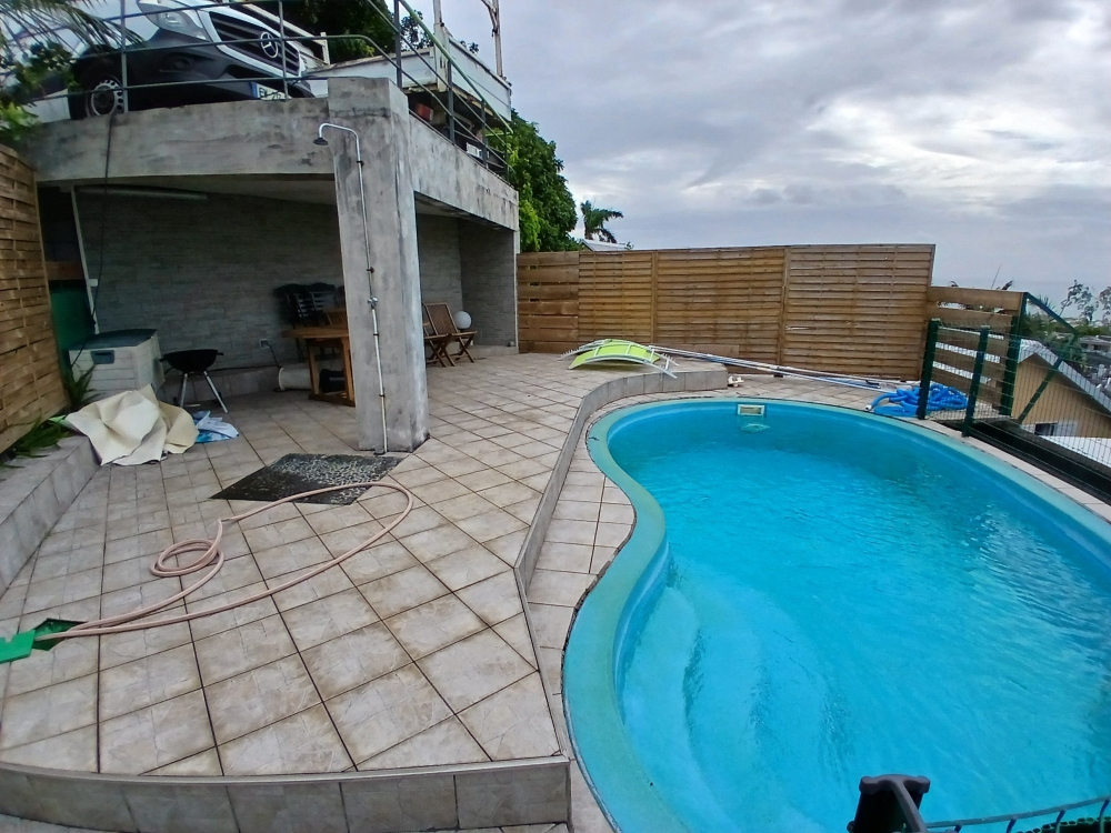 A l'extérieur, vous retrouvez un coin piscine / barbecue pour vos moments détente avec vue sur la mer.