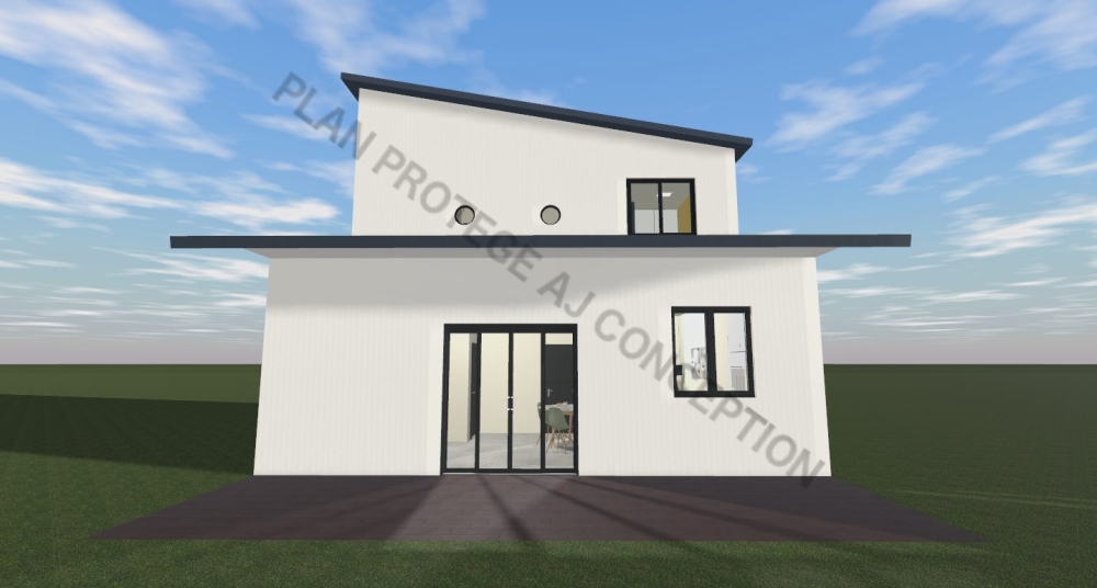Une Maison Neuve de Type F4 Duplex d'une superficie d'environ 107 m2 sur une parcelle de terrain d'environ 320 m2.