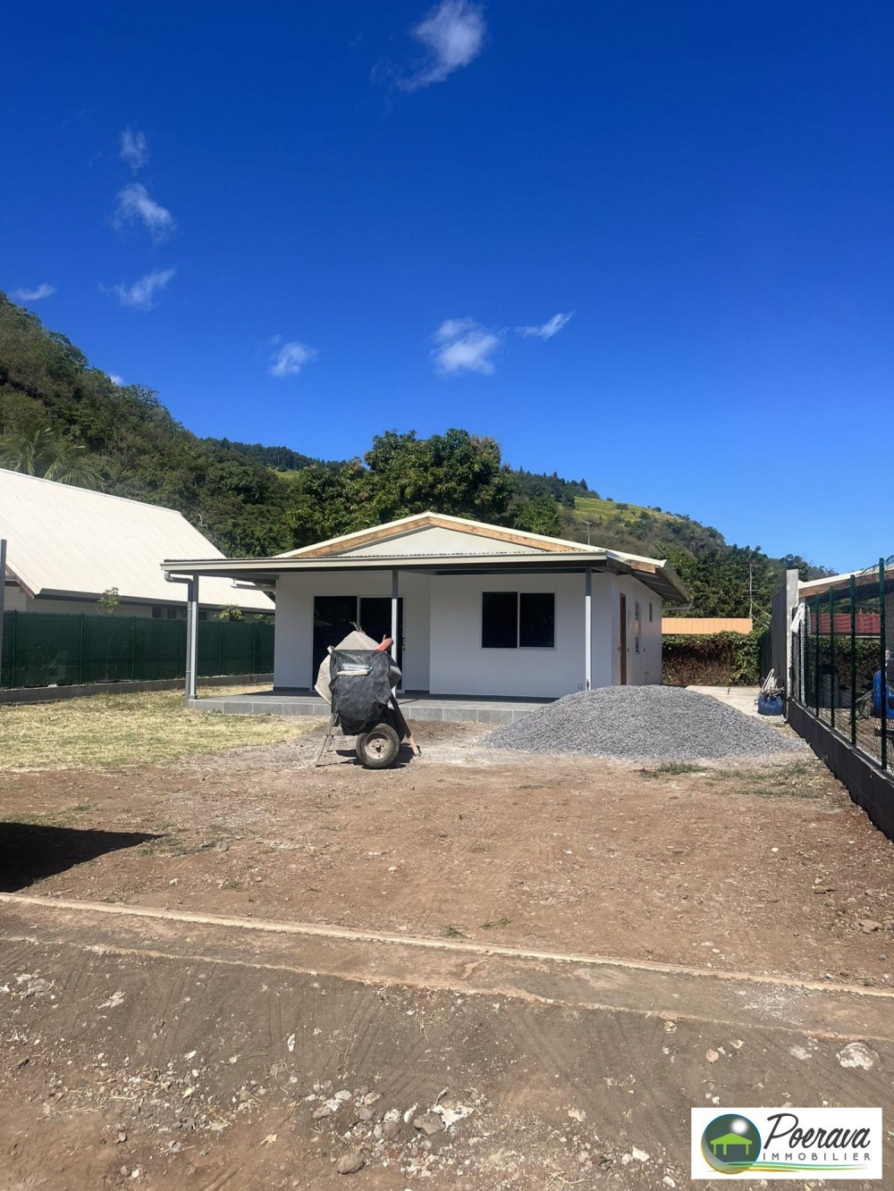 Située sur la commune de Paea pk 21 environ dans un quartier calme à proximité des commodités, maison de type F3 comprenant 2 chambres, 2 SDB, cuisine aménagée, séjour donnant sur une terrasse couverte d'environ 16m2, terrain clôturé d'environ 430m2 avec portail. Construction en dur, menuiserie aluminium, charpente métallique. Idéal pour un premier achat ou investissement locatif