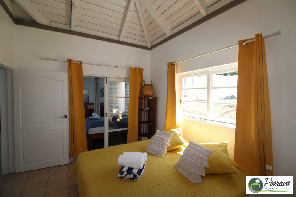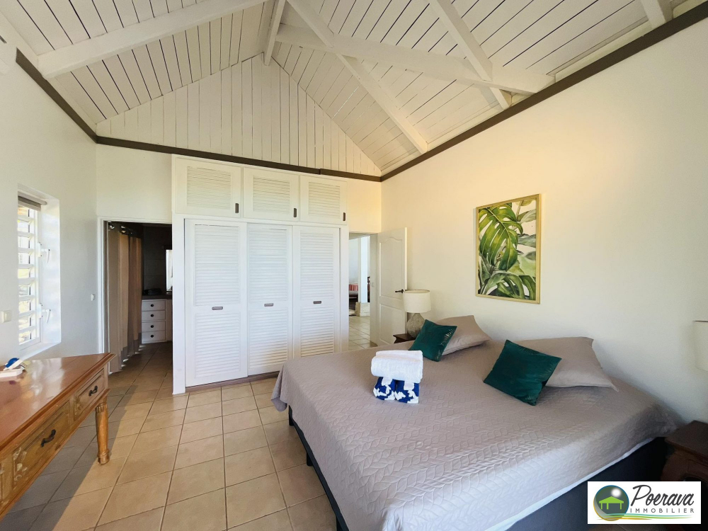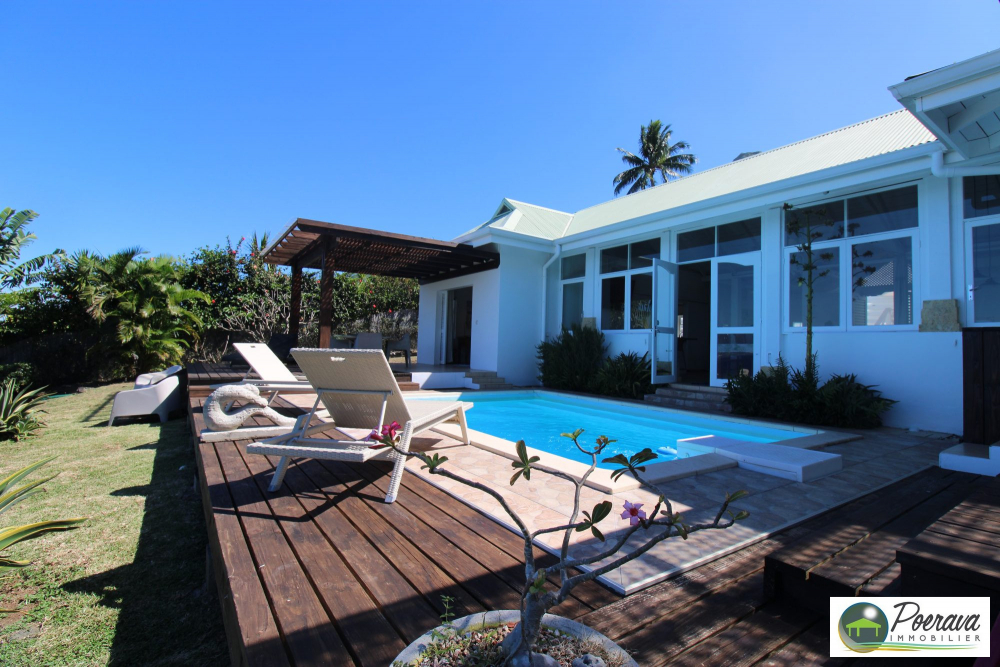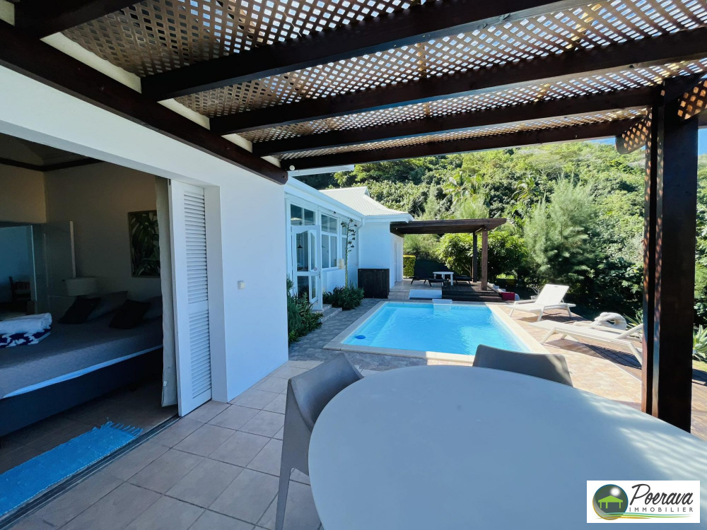 Dans une résidence sécurisée, très belle villa en dur sur les hauteurs, entièrement meublée, composée de 3 chambres dont une parentale, cuisine équipé, 2 salles de bains, terrasse couverte, piscine. Produit rare avec beaucoup de charme. Terrain de 1.300 m2 entièrement clôturé avec portail électrique, vue lagon, aucun vis à vis. SCI frais de notaire réduits. Renseignements supplémentaires sur demande.
