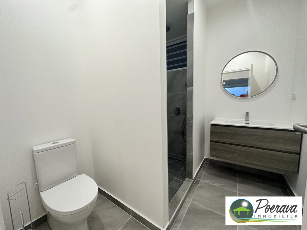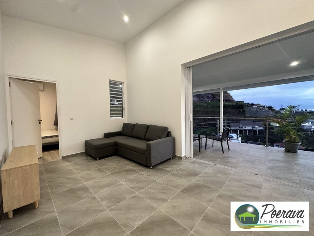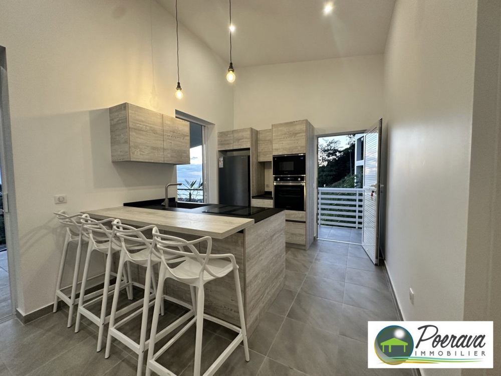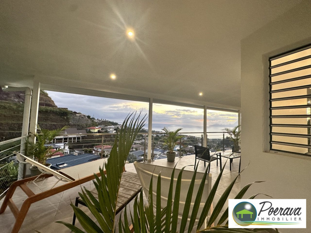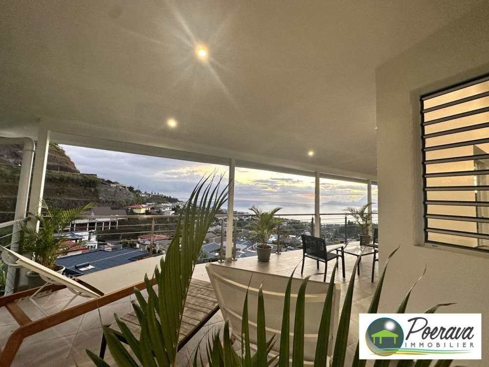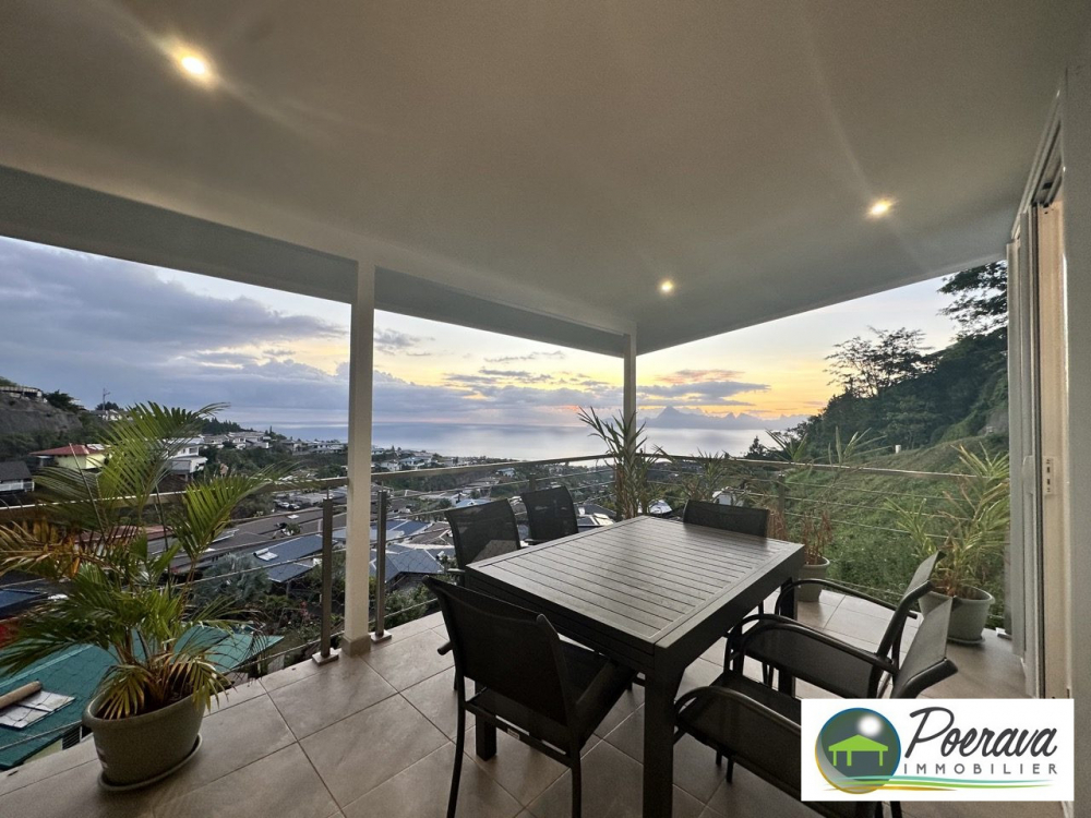 PUNAAUIA : Lotissement MIRI. Maison neuve de plein pied pleine Vue Moorea sur un terrain en pente de 780 m2. Cette maison est composée de 3 chambres, 2 salles de bains, une cuisine US ouverte sur son séjour avec une grande terrasse couverte de 40 M2.