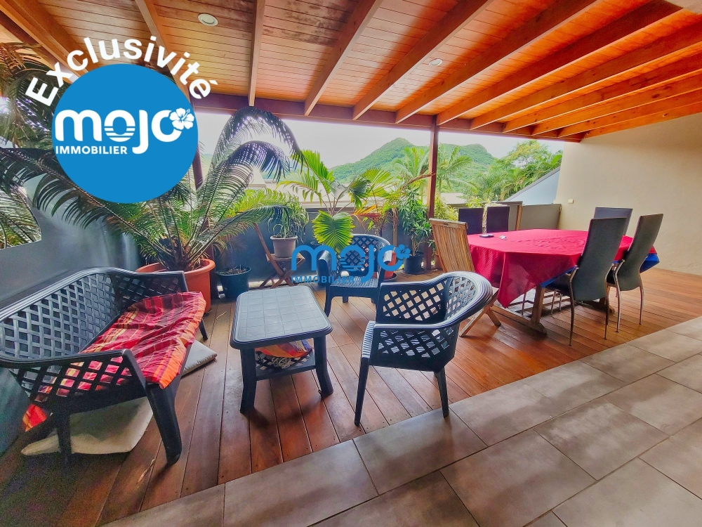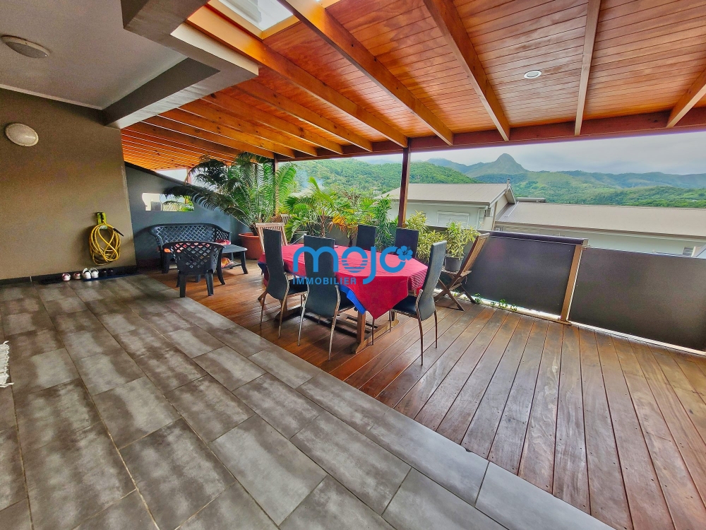 Bel appartement F4 en duplex de 123m² dont 35 m² de terrasse entièrement couverte, dans une petite résidence au calme sur Yahoué, la pièce de vie se compose d'un vaste séjour avec une cuisine équipée ouverte sur le salon.