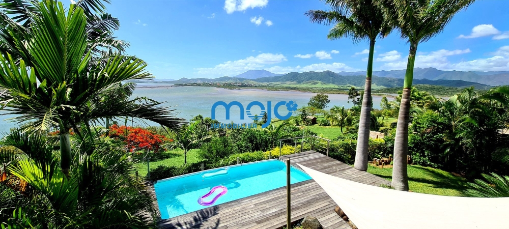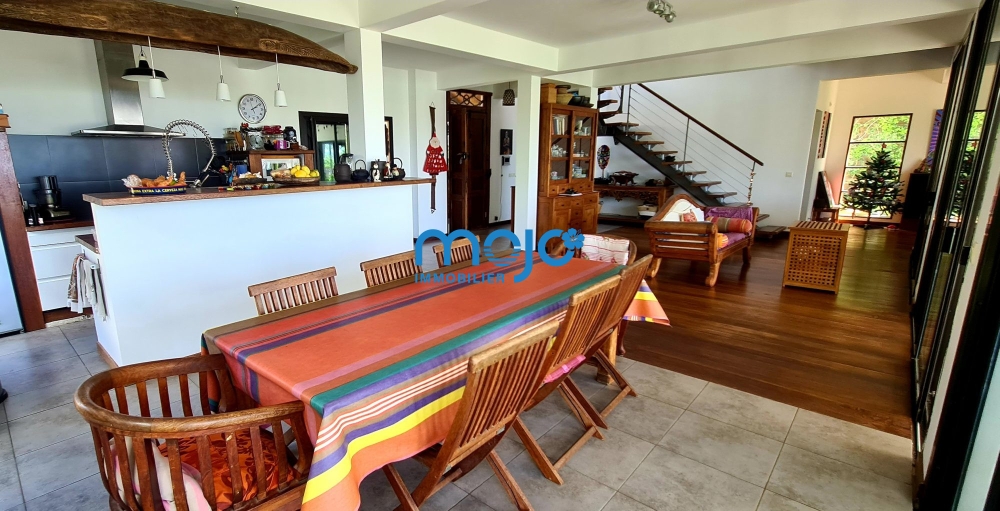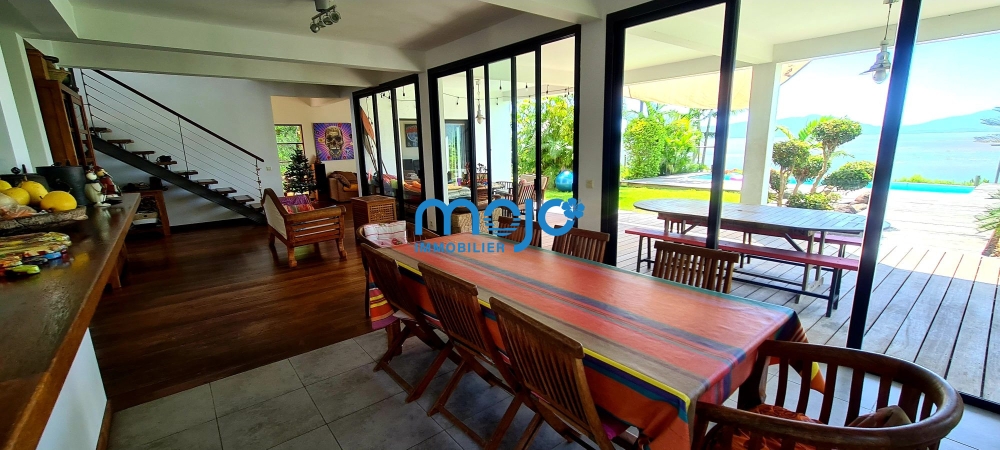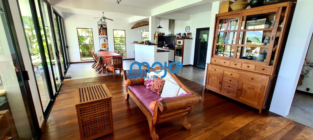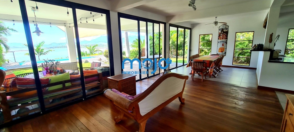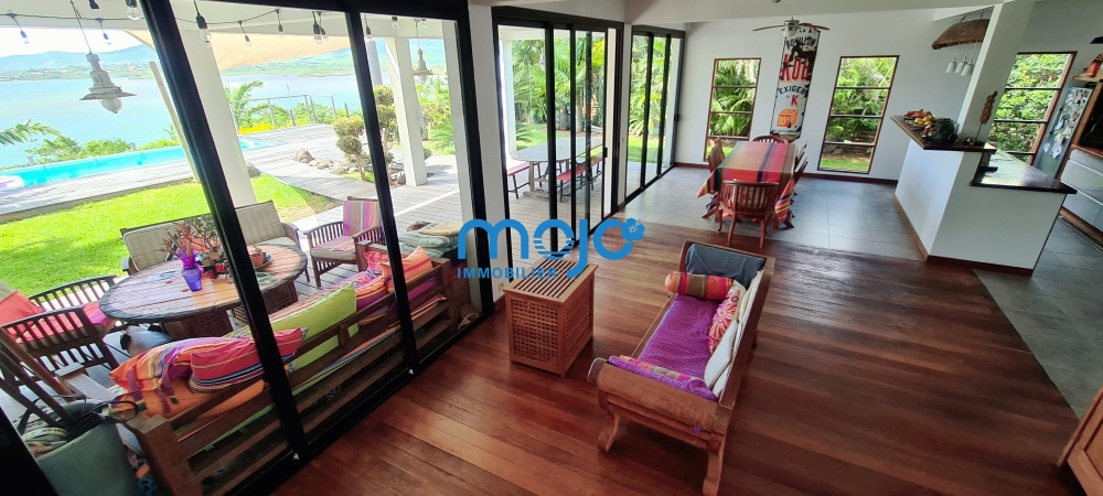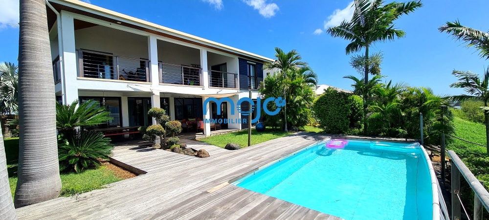Villa F4 + studio, vue mer, espace vie de 50m², coin TV, espace bureau, 2 terrasses couvertes, 2 chambres+suite parentale, 2 SDB, buanderie, piscine, carport double.