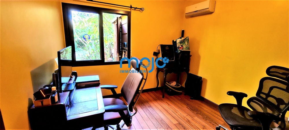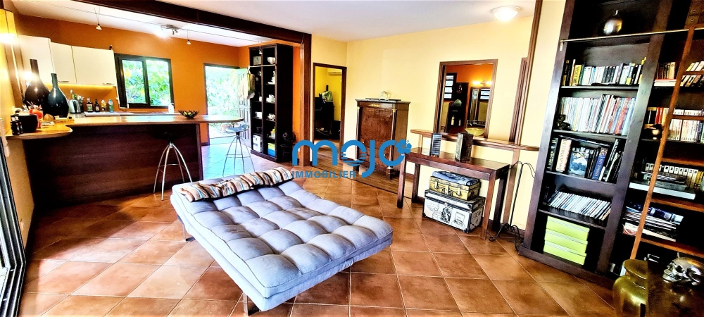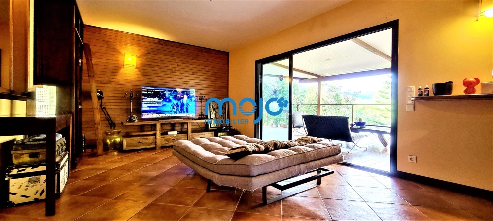 Villa F4 85m² + 50m² terrasse couverte, séjour 35m², cuisine ouverte + cellier buanderie, 3 chambres climatisées, salle d'eau et WC séparés, en impasse, vue dégagée sur montagne, C.E solaire et terrain clos.