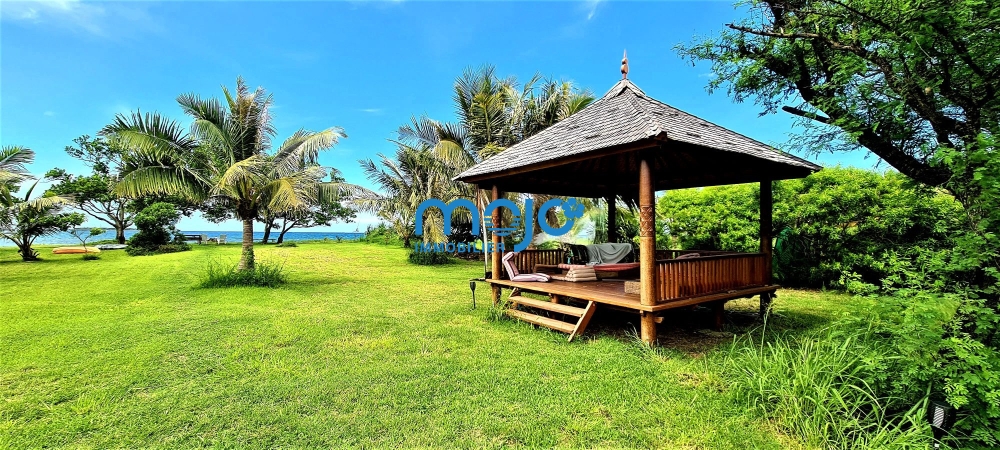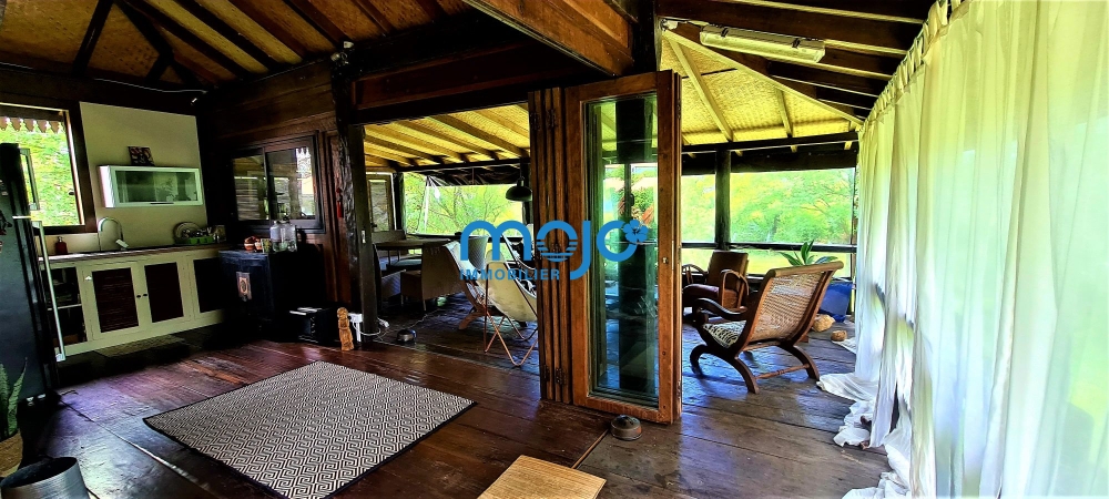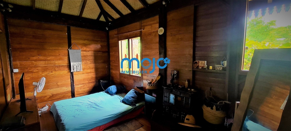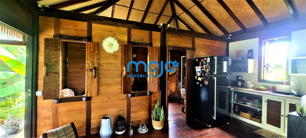 RARE, terrain de 15ares+20ares de Z.M face au lagon. Bungalow avec chambre, cuisine, séjour et terrasse + bungalow couchage + espace salle d'eau et WC + Faré.