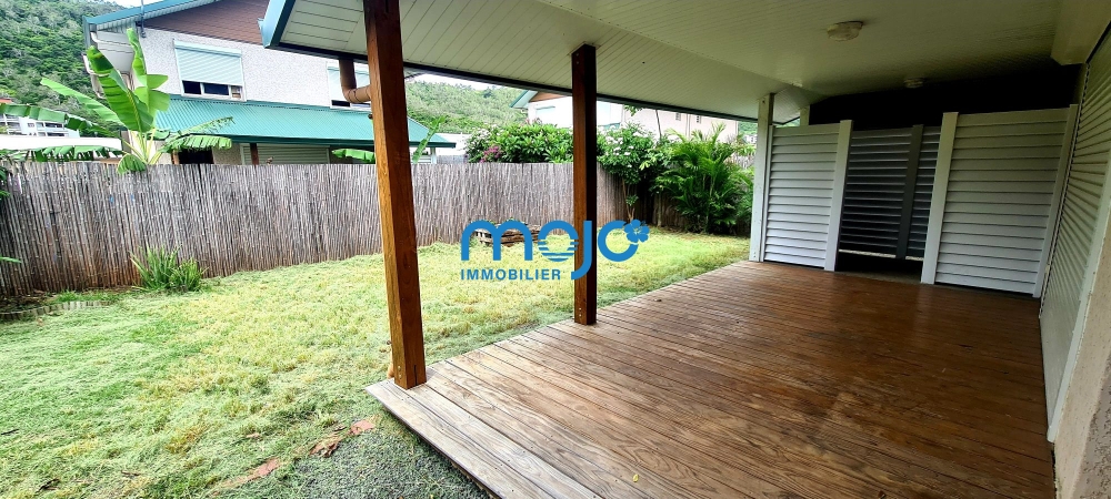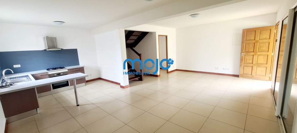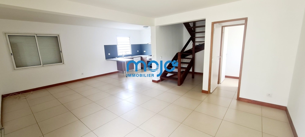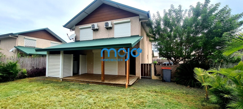 F4 de 75m²+15m² terrasse couverte duplex et mitoyenne par l'arrière. Beau séjour et cuisine US, 2 WC, Salle d'eau, 3 chambres avec placards dont 2 climatisées, buanderie extérieure et jardin clos.