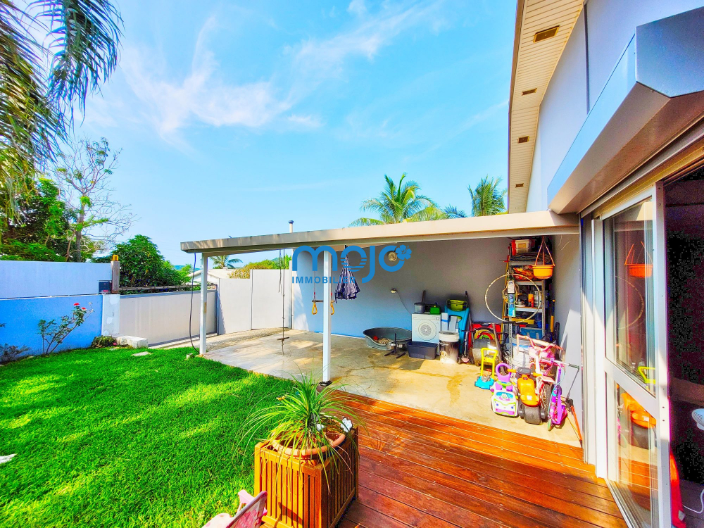 À SAISIR ! Jolie villa F4 mitoyenne en construction traditionnelle de 87m²+ 36m² de mezzanine avec une grande terrasse couverte en deck de 32m², la maison est entièrement clôturée avec un grand carport et un portail électrique ainsi qu'un bel espace jardin piscinable, le tout sans vis-à-vis.