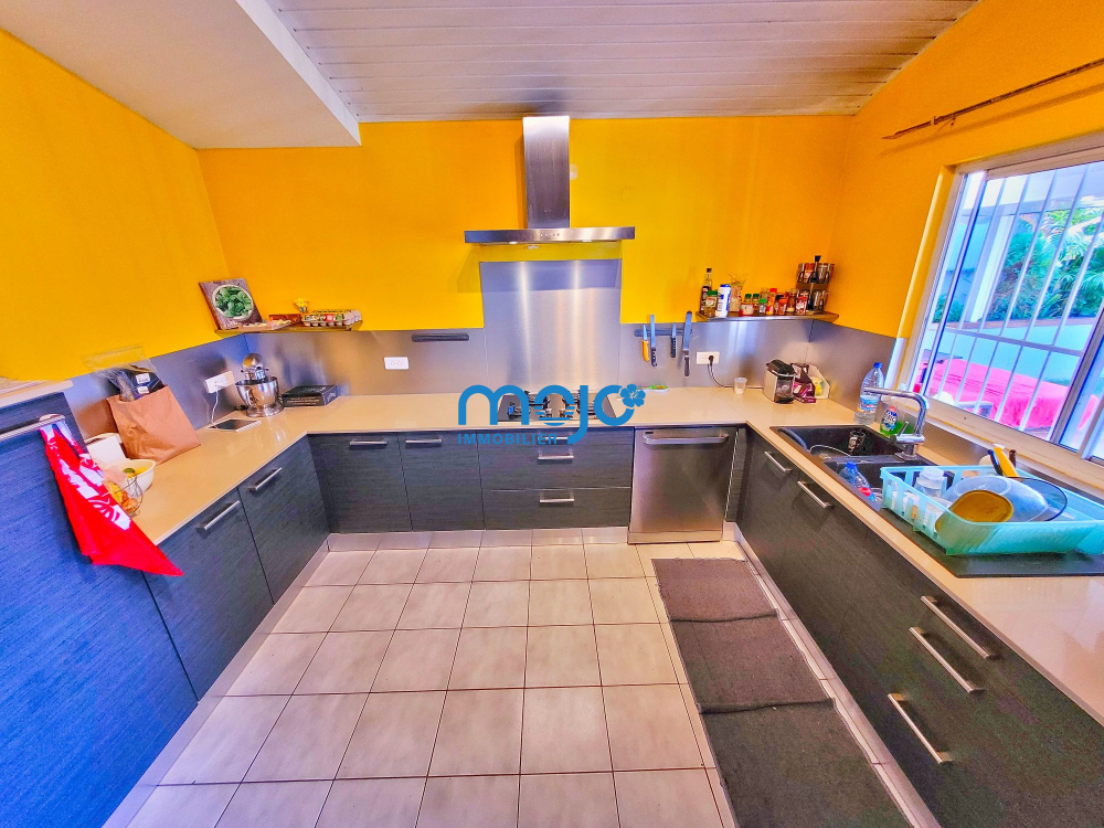 La maison se compose d‘un grand séjour climatisé avec une mezzanine de 36m² entièrement climatisé également, avec une belle cuisine aménagée et équipée (marque TEISSA), 1 chambre parentale climatisée avec dressing, 2 chambres climatisées avec placards, WC séparé et 1 salle d'eau avec douche.