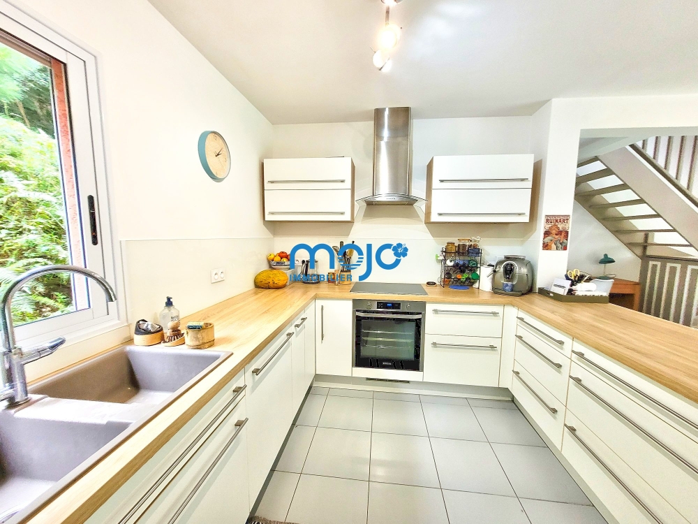 Cette villa F5 de construction traditionnelle construite sur une parcelle de plus 22 ares se compose d'un vaste salon séjour, d'une belle cuisine entièrement équipée et aménagée, d'un cellier, le tout ouvert sur une grande terrasse couverte.