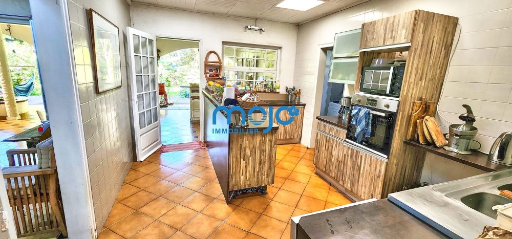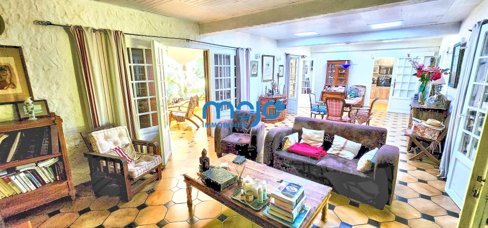 Dans la villa principale, la cuisine indépendante de 13.5m² est complétée d'une arrière cuisine, et s'ouvre sur le séjour de 41m² pour un espace de vie de plus de 50m² donnant sur la terrasse.