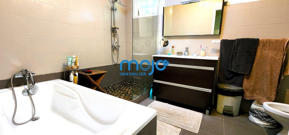 En partie nuit, elle dispose d'une 1ère chambre avec placard et salle d'eau + WC pour une surface 15m² , de 2 autres chambre de 11 et 12m² et d'une salle de bains + WC.
