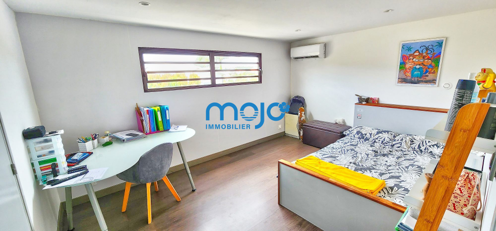 Côté nuit, la partie enfant offre 3 chambres climatisées avec placards de 11m² + mezzanine, 13m² et 16m² à l'étage, une salle d'eau avec WC et un dégagement aménagé d'un grand placard.