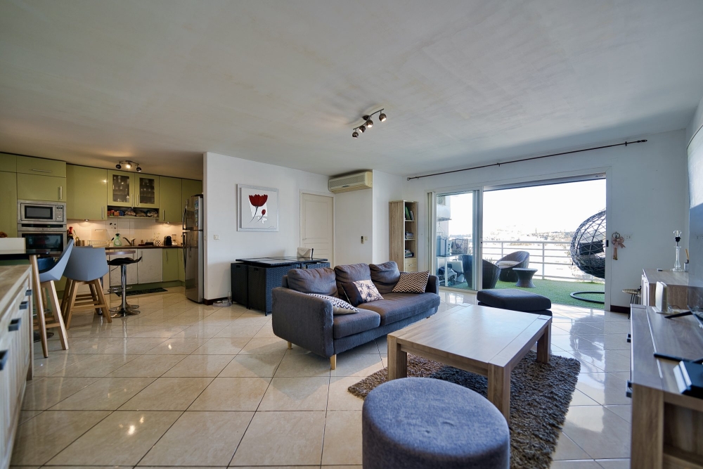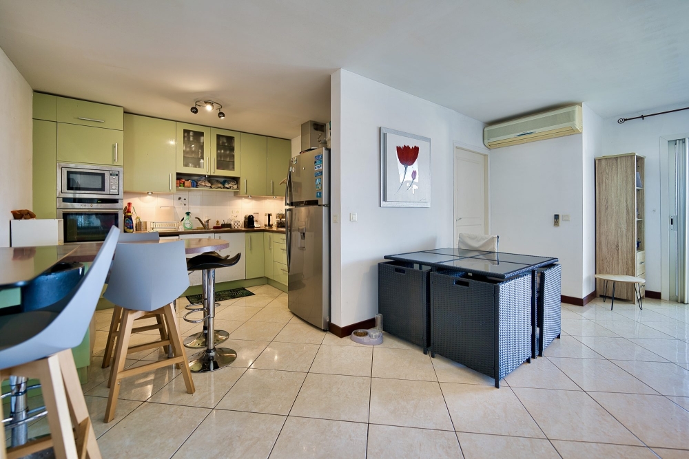 L'intérieur se distingue par une pièce de vie lumineuse qui se fusionne naturellement avec une cuisine équipée, créant un espace où il fait bon vivre et se réunir. Les deux chambres principales disposent chacune de leur propre salle d'eau privative, tandis qu'une troisième chambre polyvalente répond à divers besoins.