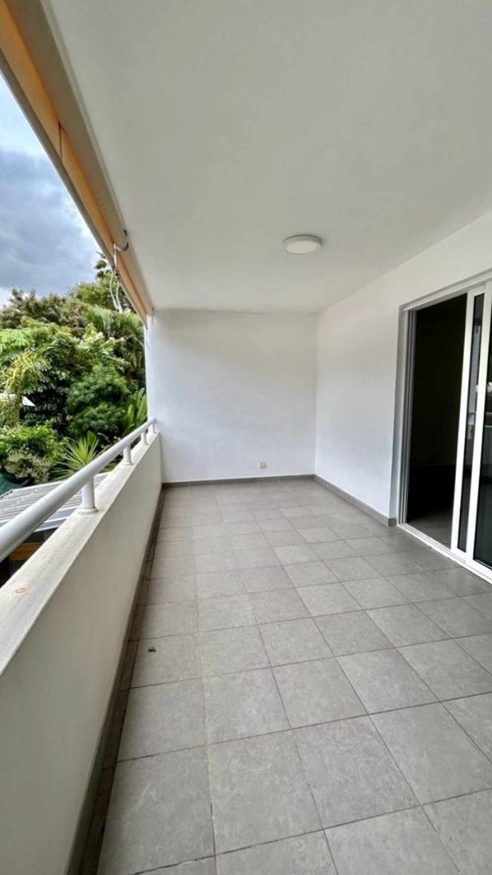 Il comprend une chambre climatisée avec placard, volet roulant électrique et niche de rangement, une salle d'eau avec WC, et un séjour avec baie vitrée à 3 vantaux ouvrant sur une terrasse couverte de 11 m².