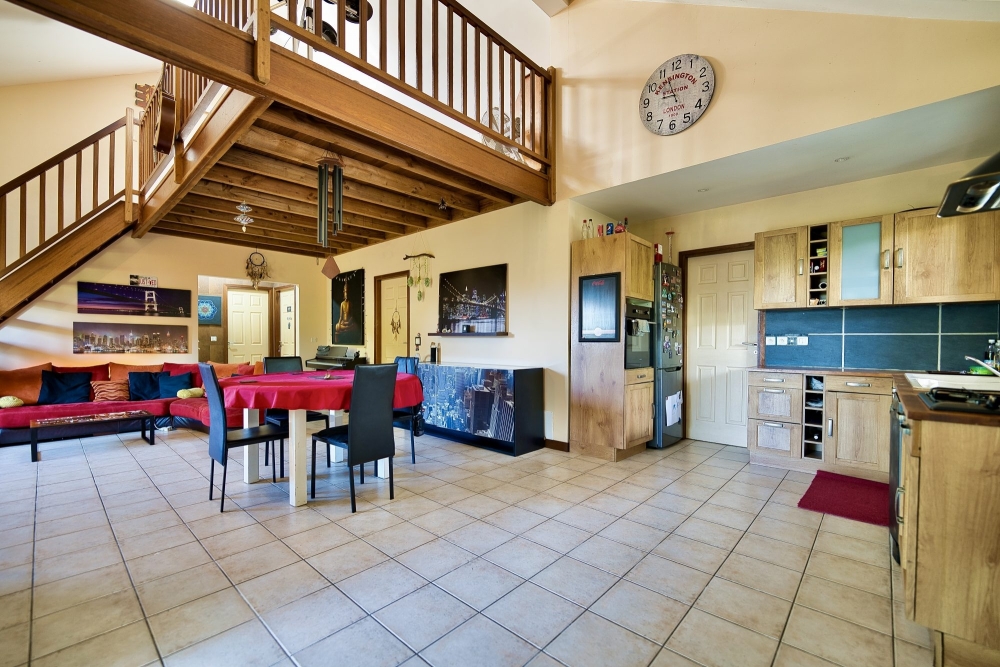À l'étage, une mezzanine offre un espace supplémentaire polyvalent.
