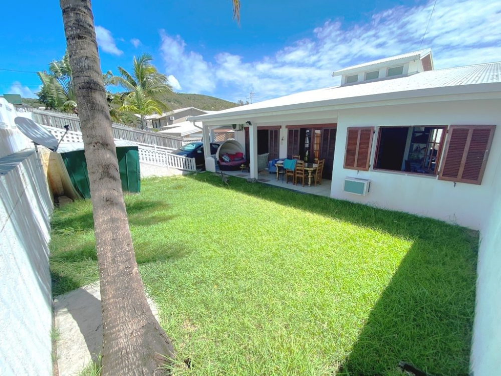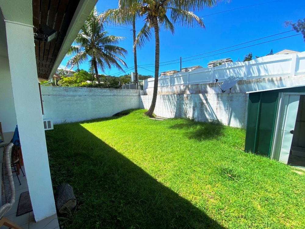 INVESTISSEURS: Maison F4 (actuellement louée 185 000 F/mois) d'environ 90 m² mitoyenne à l'arrière. Pas de vis-à-vis. Construction traditionnelle. Séjour/cuisine climatisé de 37 m². 3 chambres de 12, 10 et 9 m² dont 2 avec placards et climatisations. 1 salle de bains. WC séparés. Terrasse de 15 m² donnant sur un beau jardin de 70 m² piscinable. Buanderie. Cour de 8 m² à l'arrière de la maison. Carport 1 place + 1 place non couverte. Chauffe-eau gaz. Entièrement clôturé. Combles aménageables de pratiquement 20 m² permettant de créer une chambre et une salle d'eau supplémentaires.