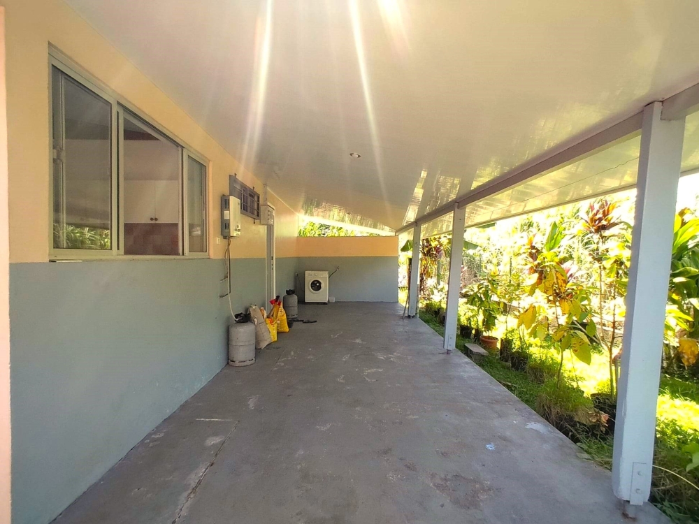 Le jardin est clôturé et arboré. La maison dispose d'un portail manuel et se situe, à quelques minutes du centre ville de Taravao.