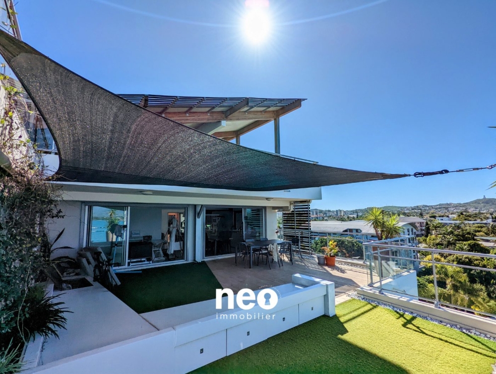 Situé à l'entrée de Ouémo, au sein d'un cadre privilégié, au dernier étage, offrant une vue mer et montagne imprenable, l'agence NÉO Immobilier vous propose de devenir propriétaire de ce sublime appartement F4 d'environ 130m² et totalisant 164m² de terrasse !
