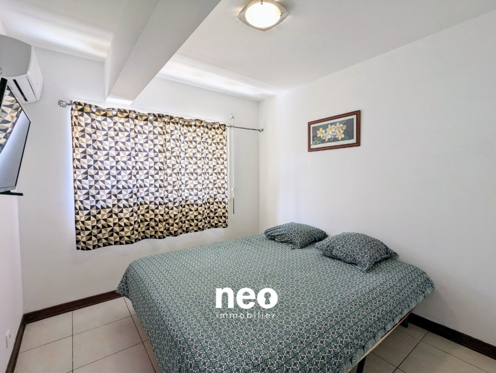 Cet appartement dispose d'une lumineuse cuisine meublée et équipée ouverte sur séjour et salle à manger, une chambre avec placards et climatisation et une salle d'eau avec WC.