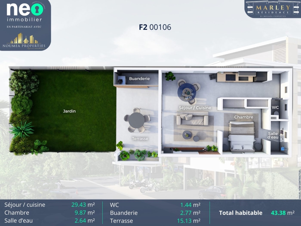 Située dans un environnement calme et résidentiel, proche des écoles et commerces et du CHT, l'agence NÉO Immobilier vous propose de devenir propriétaire au sein de la nouvelle résidence MARLEY