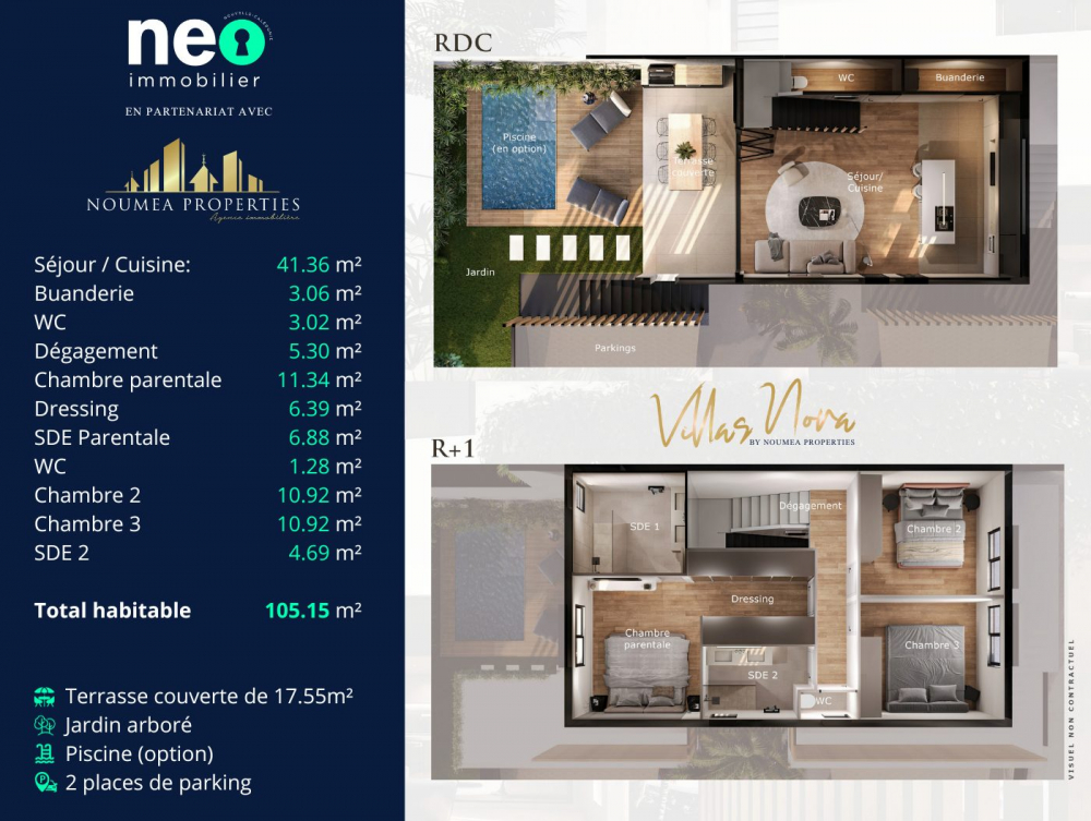 En impasse, au sein d'un environnement calme et verdoyant, de la Vallée des Colons, l'agence NÉO Immobilier vous propose de devenir propriétaire d'une villa neuve de type F4 jumelée d'environ 105m² avec jardin clôturé et arboré.