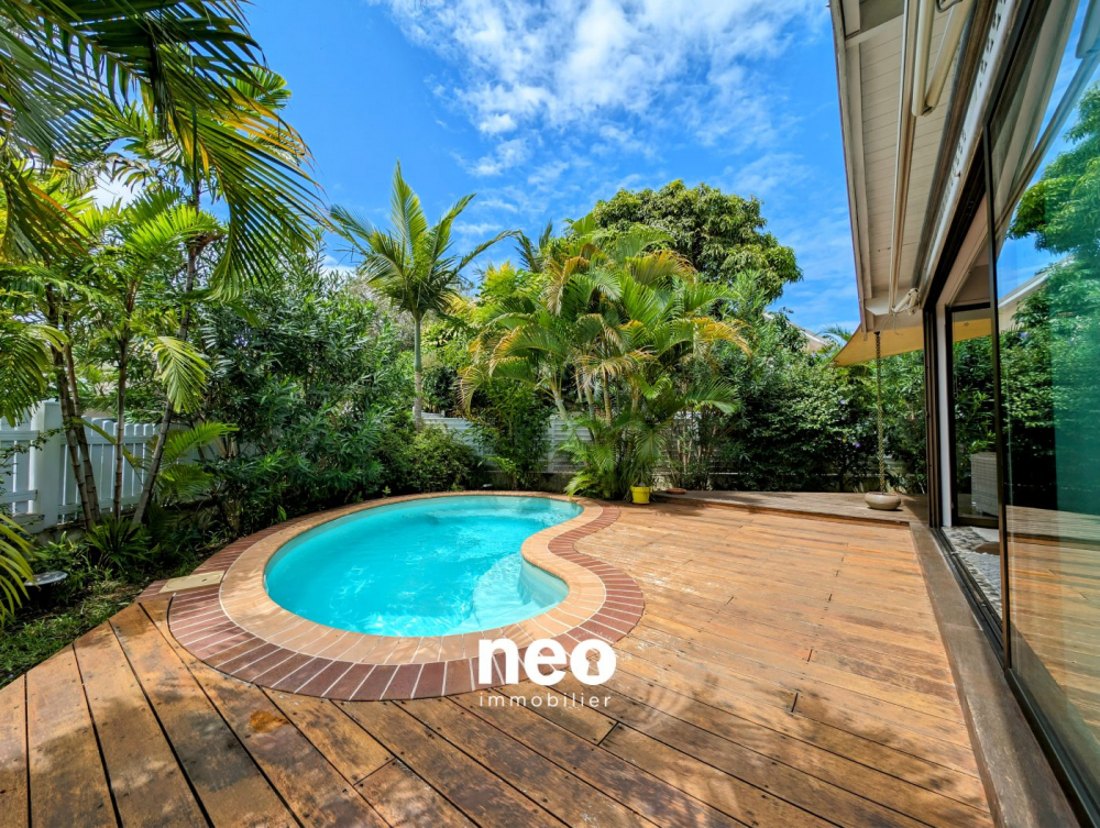 Jardin arboré, 60 m² de terrasses en deck et piscine au sel