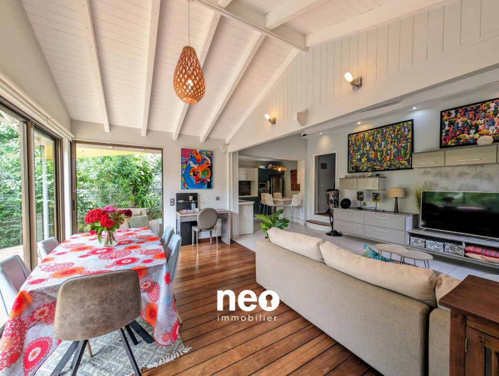 En duplex, vous retrouverez au rez-de-chaussée un bel espace de vie comprenant une cuisine équipée ouverte sur lumineux séjour directement connecté à l'extérieur grâce à ses baie vitrées à galandage !