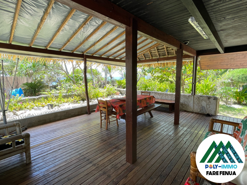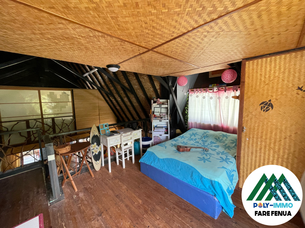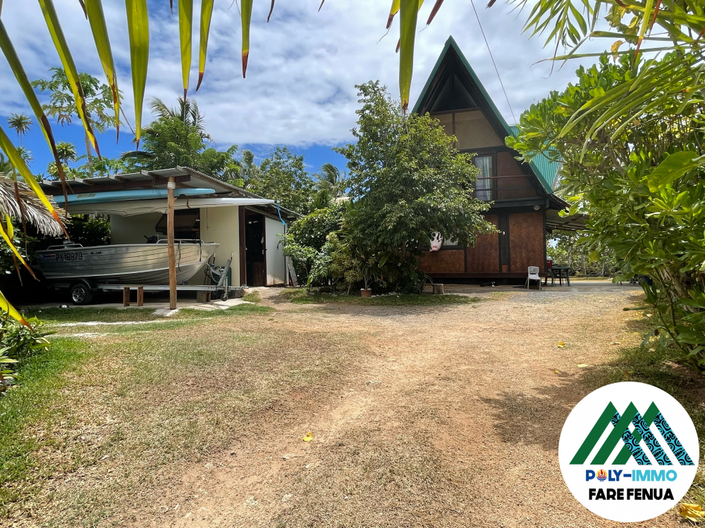 Vous cherchez une maison à Moorea à proximité du quai des Ferrys, de l'aéroport, du golf et de la plage de Temae ? Venez découvrir cette maison construite dans le style local polynésien (bois, pandanus) avec charpente toute hauteur dans la pièce principale. Cette maison dispose de nombreux espaces ouverts pour faire circuler l'air, et deux chambres indépendantes, et deux espaces ouverts pour chambre ou bureau. Une cuisine aménagée ouverte sur la grande pièce à vivre donnant sur la terrasse avec vue mer vous permettra de profiter du merveilleux jardin clos avec portillon donnant accès direct à la plage de sable fin. Vous bénéficierez également d'un bungalow totalement aménagé avec cuisine et salle d'eau pour recevoir famille et amis, ou faire de la location. Un garage couvert fermé et un abri attenant vous permettront de stocker les vélos, les surfs, bateau ...