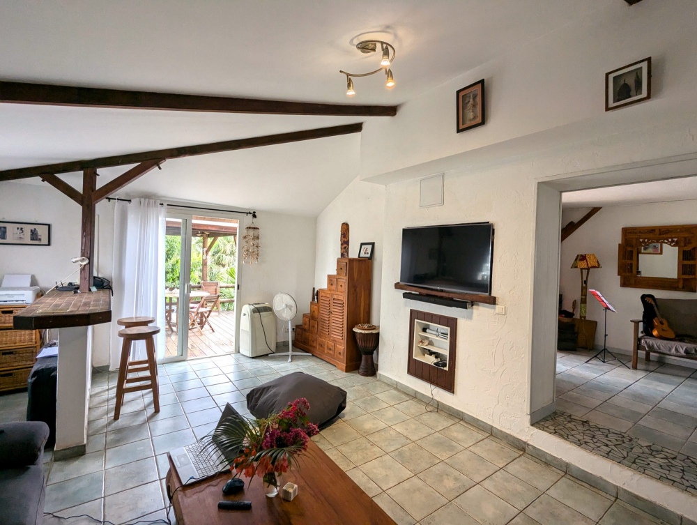Sur un terrain d'environ 25 ares, entièrement clôturé et joliment arboré avec de nombreux arbres fruitiers, nous vous invitons à découvrir cet ensemble immobilier composé d'une villa F3 de 110m² avec une terrasse couverte de 25m², un faré avec vue mer et un espace piscine avec douche, tobogan et deck. Le bien dispose également d'un bungalow F2 avec terrasse donnant sur un jardin éloigné de la maison principale, idéal pour un rapport locatif à la nuitée. Pour finir vous disposerez d'un grand parking avec carport bateau et un Dock + atelier de 60m².