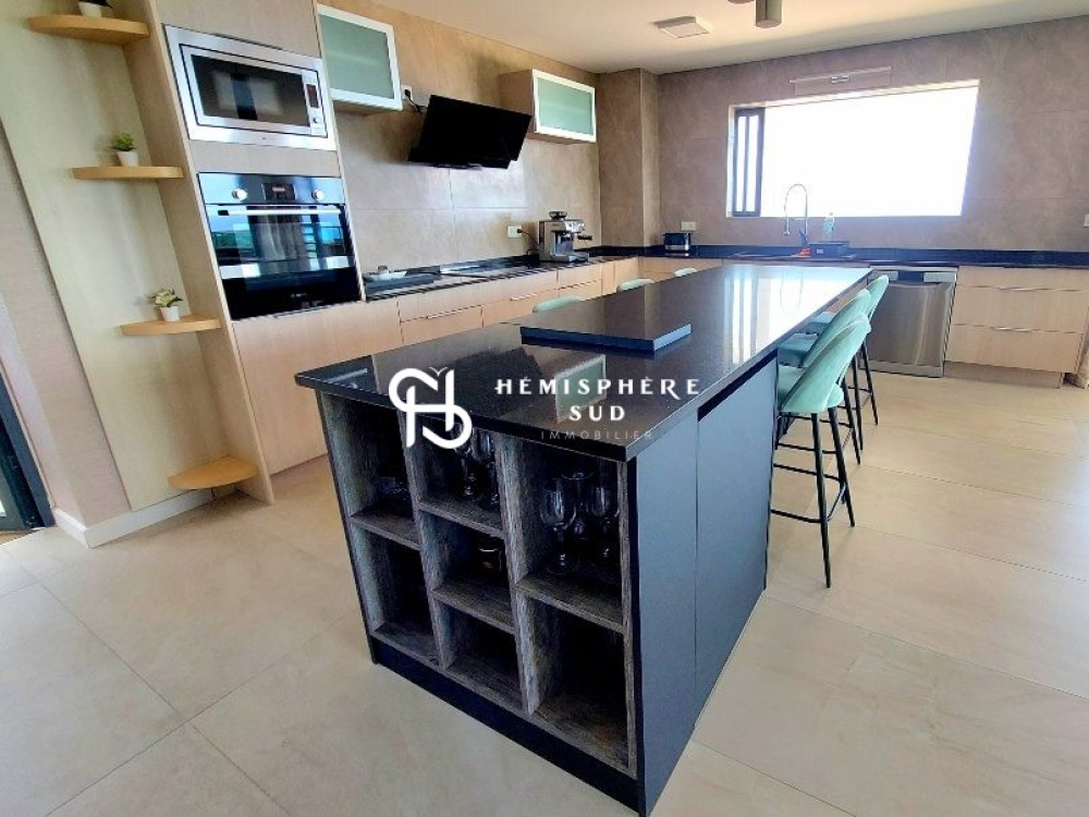 Parfaite alliance d'un style contemporain chaleureux, du mobilier et des équipements d'excellente facture qui mettent en valeur ses généreux volumes (320 m² au total), l'appartement est composé d'un spacieux salon confortable et lumineux, d'une grande cuisine entièrement équipée, conviviale et très fonctionnelle.