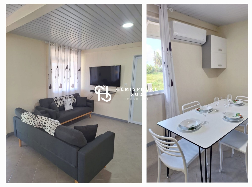 Dans un quartier calme et familial, édifiée sur une parcelle de 1 000 m², cette maison F3 de 60 m² environ se compose : d'un salon climatisé prolongé par une terrasse couverte , d'une cuisine, de deux chambres, et d'une salle de bains.