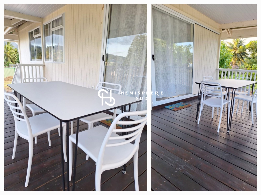 Tout le charme d'une jolie maison traditionnelle fraîchement rénovée, meublée, bien située à proximité des commodités du petit centre urbain de la commune de Patio (mairie, commerces...), sur l'île de Tahaa.