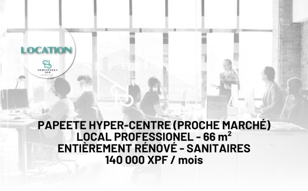 Beau local lumineux entièrement rénové de 54 m², avec terrasse et sanitaire, en étage, dans un immeuble idéalement situé au centre de Papeete.