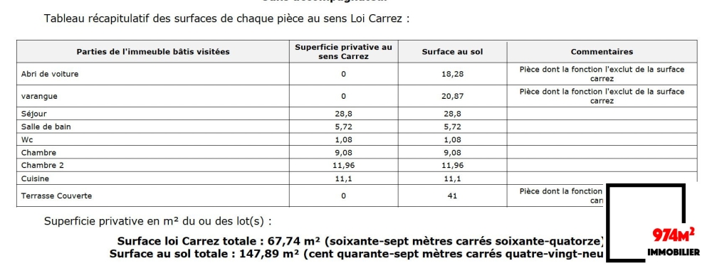 Un grand séjour lumineux avec varangue, une cuisine aménagée-équipée séparée avec une grande terrasse de 41m2 en arrière, deux chambres, une salle de bains et Wc séparé