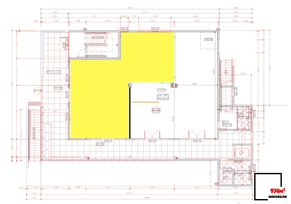 L'agence 974m2 vous propose une surface commerciale ou professionnelle de 106m2 (B2) dans une zone attractive proche du nouveau centre commercial de l'Eperon (SUPER U).