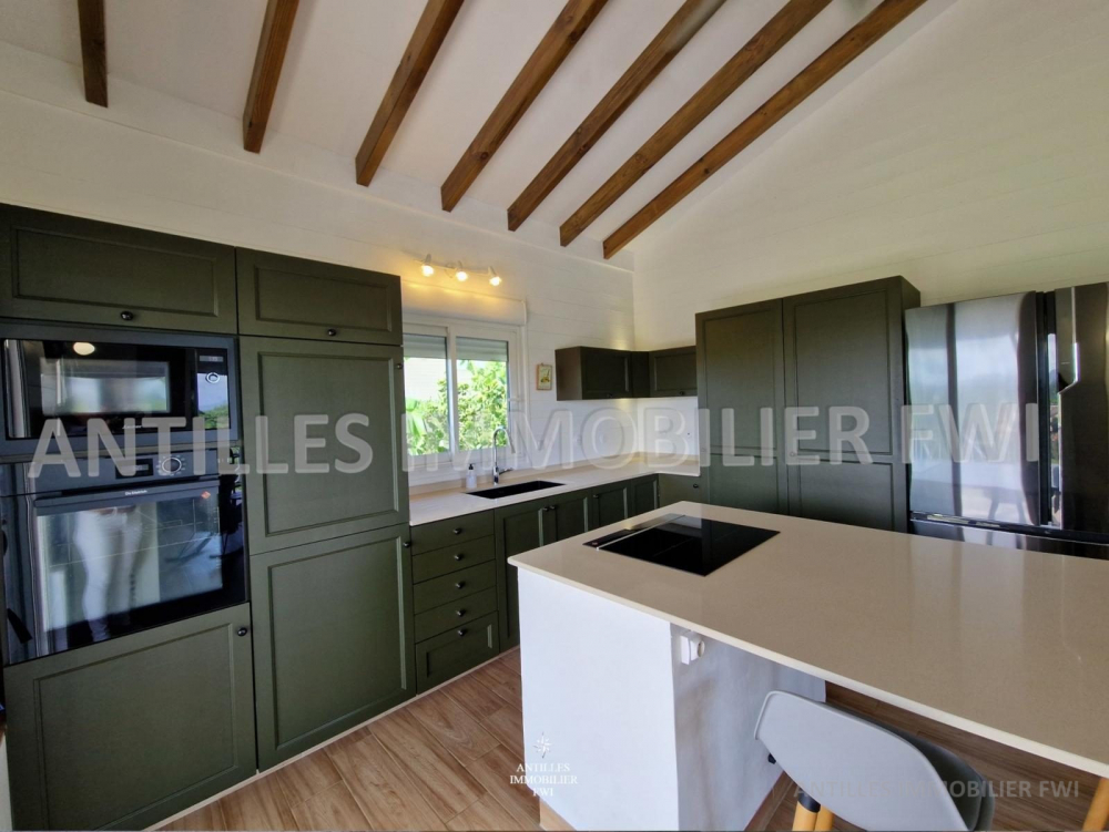 RIVIÈRE-SALÉE : Coup de coeur de l'agence : Cette villa F3/4 est de très loin l'une de celles qui se comptent sur les doigts d'une main tant elle a été conçue avec beaucoup d'ingéniosité, de matériaux nobles et disposent aujourd'hui de finitions de qualité et d'un potentiel encore à développer. Cette villa neuve, clef en main vous permettra de poser vos valises. Conçue pour bénéficier des alizés, et profiter de la belle Martinique (case a vent, cuve récupération eau de pluie, double circuit d'eau), elle bénéficie de l'expérience de ces 2 propriétaires en matière de construction ou rien n'est laissé au hasard. L'espace de vie à l'étage dispose d'un séjour, cuisine ouvert sur sa large terrasse vue dégagée, deux chambres (3ième chambre possible) et une salle d'eau et son sous-sol entier déjà aménagé à 75% propose aujourd'hui une cuisine d'été, un atelier, une buanderie et garage. Mieux que des mots : venez visiter cette belle maison et son jardin tropical paysagé ! Bien non soumis au DPE. Contactez ANTILLES IMMOBILIER F.W.I. au 06-96-31-81-82.