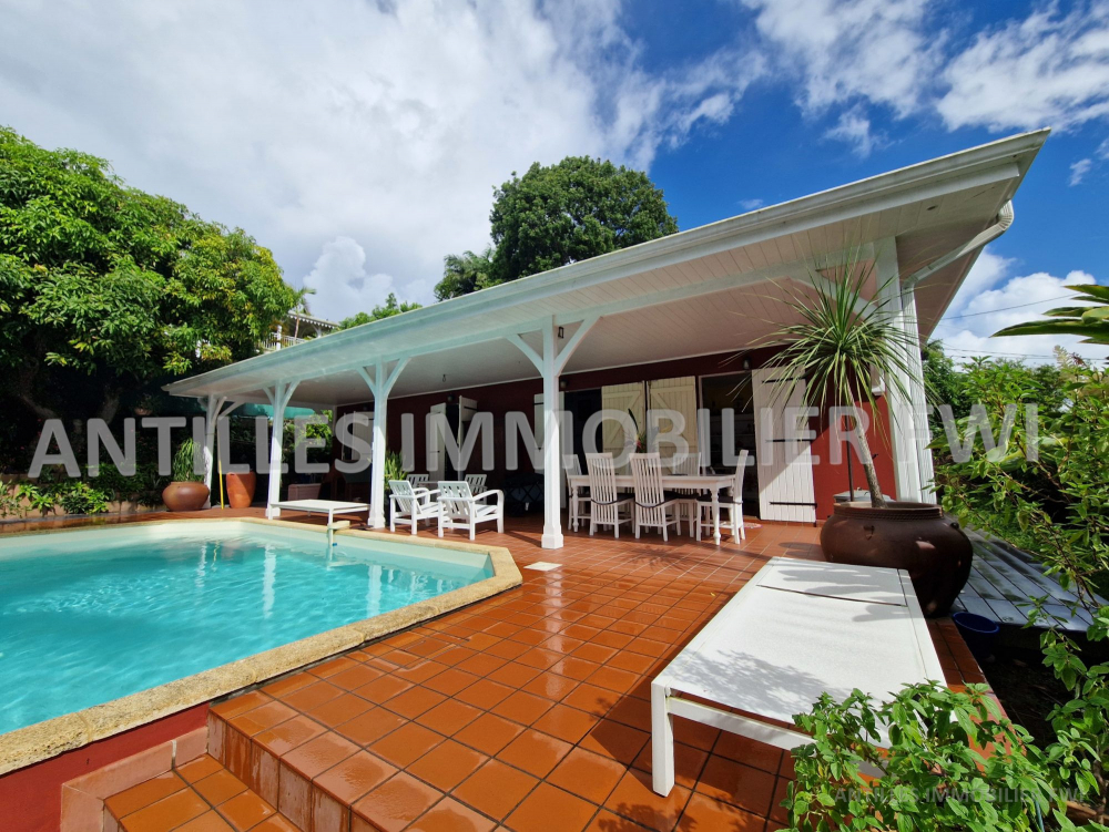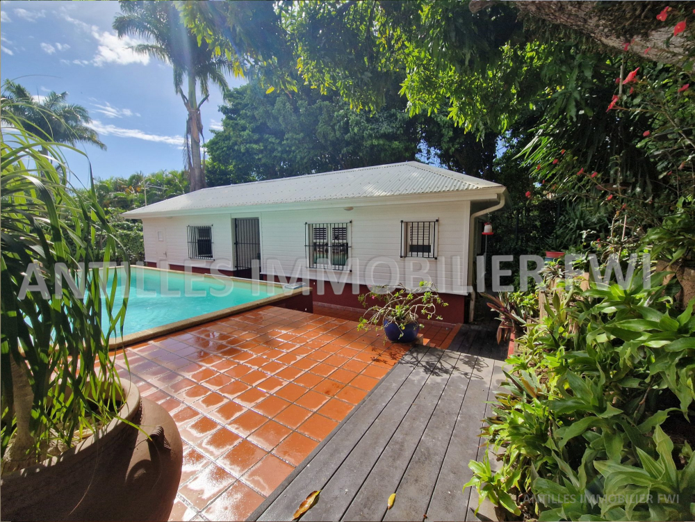 FORT DE FRANCE Didier : Emplacement Numéro 1 pour cette villa d'architecte située dans son écrin de verdure au calme absolu, L'Art de vivre aux Antilles pour cet ensemble ouvert sur la piscine et sa superbe terrasse de 47m² pour vos dimanches entre amis. L'espace de vie a été pensé pour préserver son intimité dans le corps principal composé d'un séjour, cuisine aménagée équipée, deux chambres climatisées avec chacune leur salle de bain. Autour de la piscine se situe le bungalow d'invités composé d'une chambre avec salle d'eau et salle de musique/jeux/cinéma ou bureau idéal pour vos adolescents et leurs amis ou profiter de la famille sans promiscuité. Bien soumis au DPE. Contactez ANTILLES IMMOBILIER au 06 96 27 57 93.