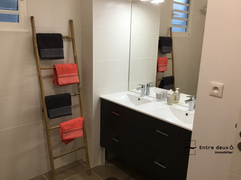 Vous finirez par une salle d'eau avec douche à l'italienne, double vasque, et wc