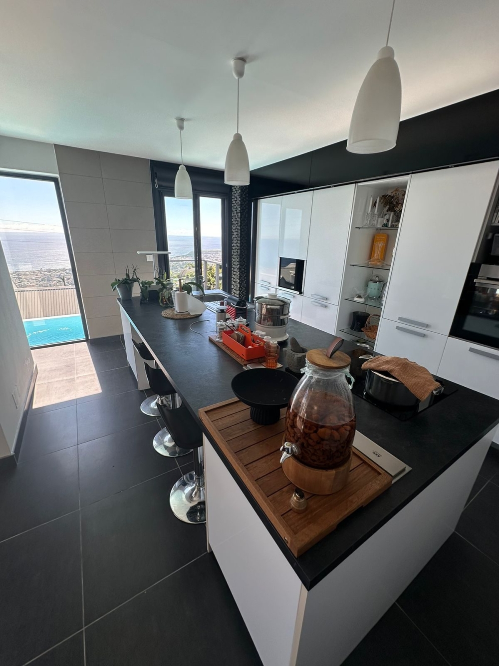 La villa se compose au rez-de-chaussée d'un séjour avec cuisine ouverte et équipée avec vue mer, deux chambres climatisées, une salle de bains et un toilette.