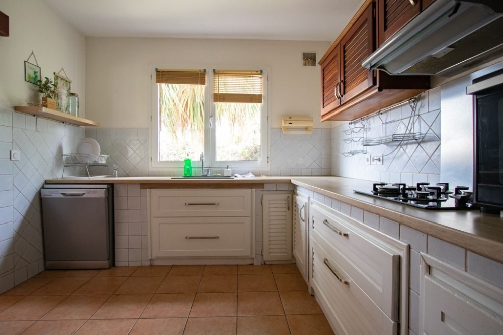 La villa se compose au rez-de-chaussée, d'un vaste séjour donnant sur la terrasse, d'une cuisine ouverte et aménagée, de trois chambres avec placards dont deux climatisées, une salle d'eau et un toilette séparé.