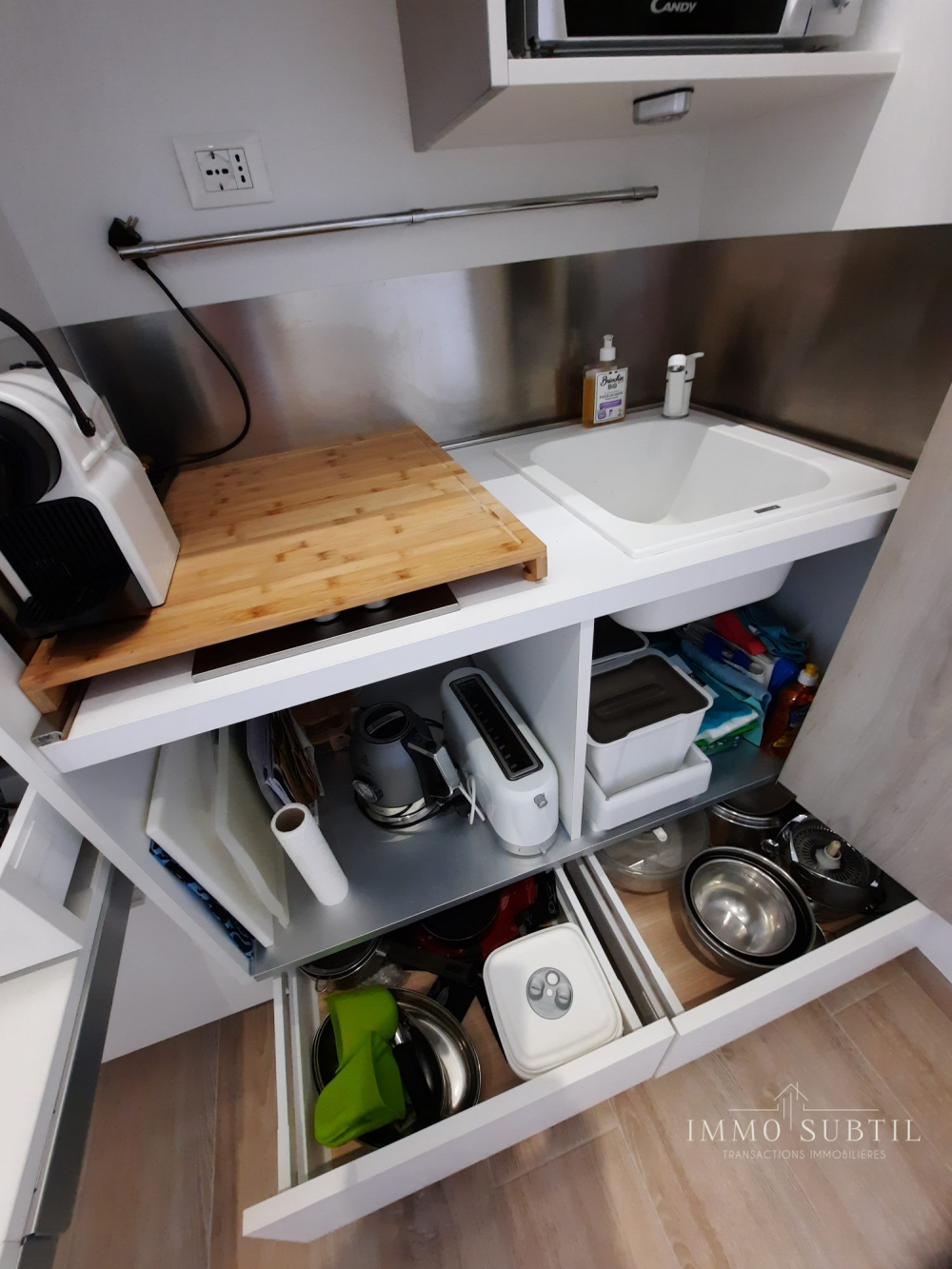 Ce studio est vendu meublé, il a été rénové avec goût, l'espace a été optimisé et les prestations sont de grands qualité.