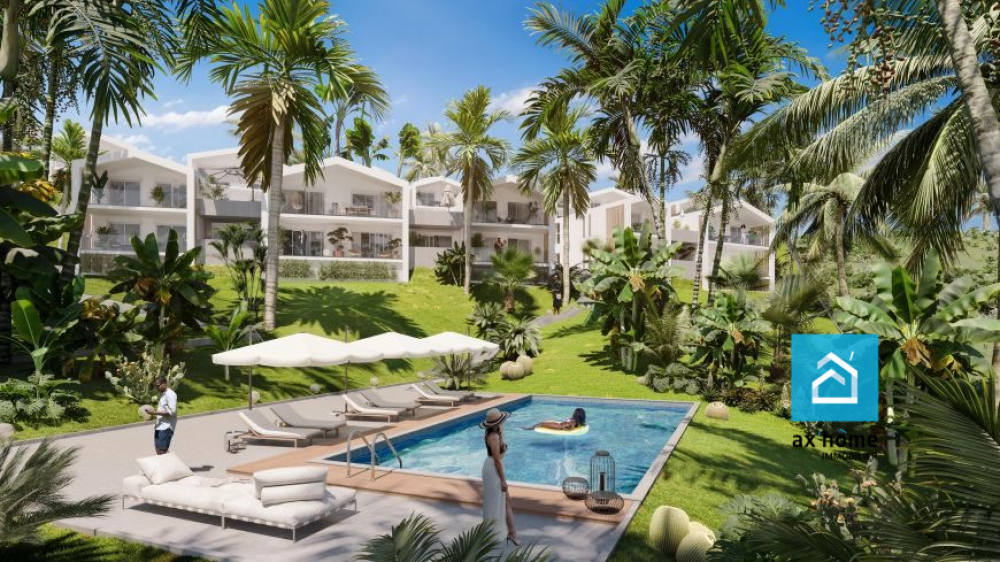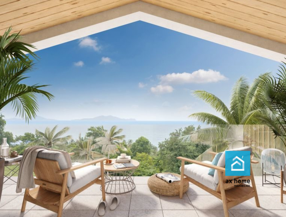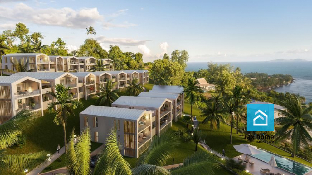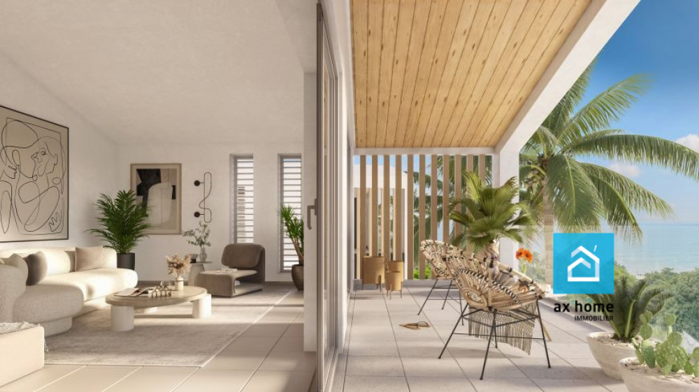 À vendre à Trois-Rivières (97114) : grand appartement neuf orienté sud de 84 m² au premier étage d'un immeuble. Ce T4 comporte une pièce à vivre, trois chambres et une cuisine aménagée équipée. Il dispose également de deux salles d'eau et de WC. En annexe, on trouve un balcon (50 m²), deux places de parking et une piscine. Vue sur la mer.