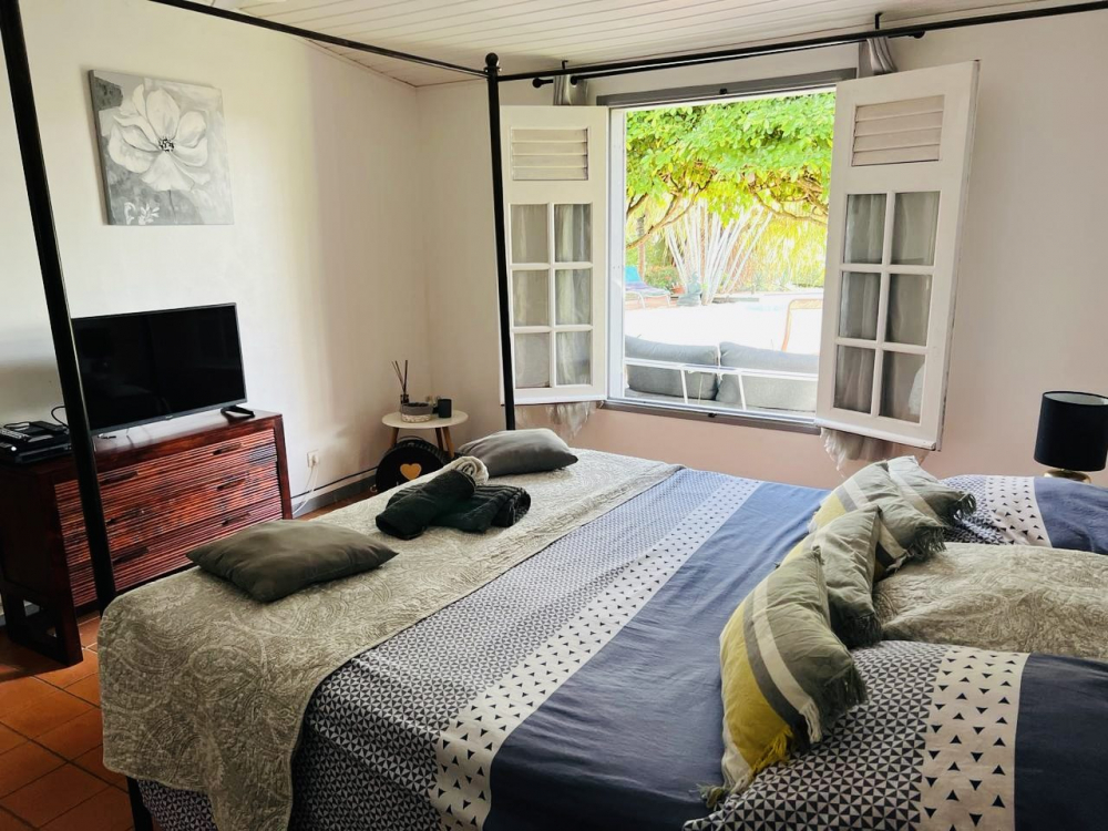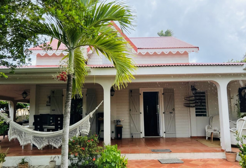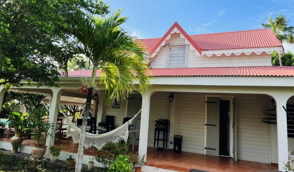 HOP IMMOBILIER ! vous présente cette chaleureuse propriété composée d'une grande villa principale et d'un studio indépendant sur un terrain de 1279 m2. Idéalement situé à proximité de toutes commodités et du centre-ville de Saint François, cet ensemble propose la combinaison parfaite pour venir s'installer dans un des secteur les plus recherché de Guadeloupe. La villa bénéficie des atouts pour bien vivre sous le climat des Antilles : au rez de chaussée il y a un vaste séjour ouvert sur la cuisine aménagée et équipée, une suite parentale avec sa salle d'eau, deux autres chambres ainsi qu'une autre salle d'eau, des wc de courtoisie, à l'étage vous trouvez au choix deux chambres, ou une chambre et un bureau, avec une salle d'eau. Les espaces sont généreux, les terrasses extérieures invitent aux moments de farniente autant qu'aux moments de partage grâce à la magnifique piscine et à l'espace barbecue. Le soin apporté aux espaces verts vous plonge dans un jardin tropical multicolore. Le studio est un réel avantage. Il se compose d'une chambre, d'une salle d'eau et d'un petit espace jardin privatif avec un spa pour se détendre. Pour faciliter le quotidien et ne pas manquer d'eau, une citerne tampon a été installée, la villa est climatisée tout comme le studio, de nombreux ventilateurs de plafond apportent un réel confort, l'assainissement indépendant est en micro-station, il y a un chauffe-eau solaire. Aucun travaux à prévoir dans cet ensemble où vous n'avez plus qu'à poser vos valises. Je reste à votre disposition pour répondre à vos questions ou programmer une visite.Cette présente annonce a été rédigée sous la responsabilité éditoriale de Sophie THIBAUD, +590 690 29 38 06 agissant sous le statut d'agent commercial immatriculé au RSAC DE POINTE A PITRE n° 487 666 810 auprès de la SAS FCI Patrimoine, HOP IMMOBILIER, au capital de 37 000 euros, 27 avenue de la Marne à MERIGNAC 33700, RCS BORDEAUX n° 500 130 059, Carte professionnelle Transactions sur immeubles et fonds de commerce n° CPI 3301 2017 000 017 791 CCI BORDEAUX. 'Les informations sur les risques auxquels ce bien est exposé sont disponibles sur le site Géorisques : www.georisques.gouv.fr'Référence annonce : 588Date de réalisation du diagnostic : 03/07/2023Les honoraires sont à la charge de l'acquéreur 550 000 € net vendeur – 22 000 € frais d'agence charge acquéreur